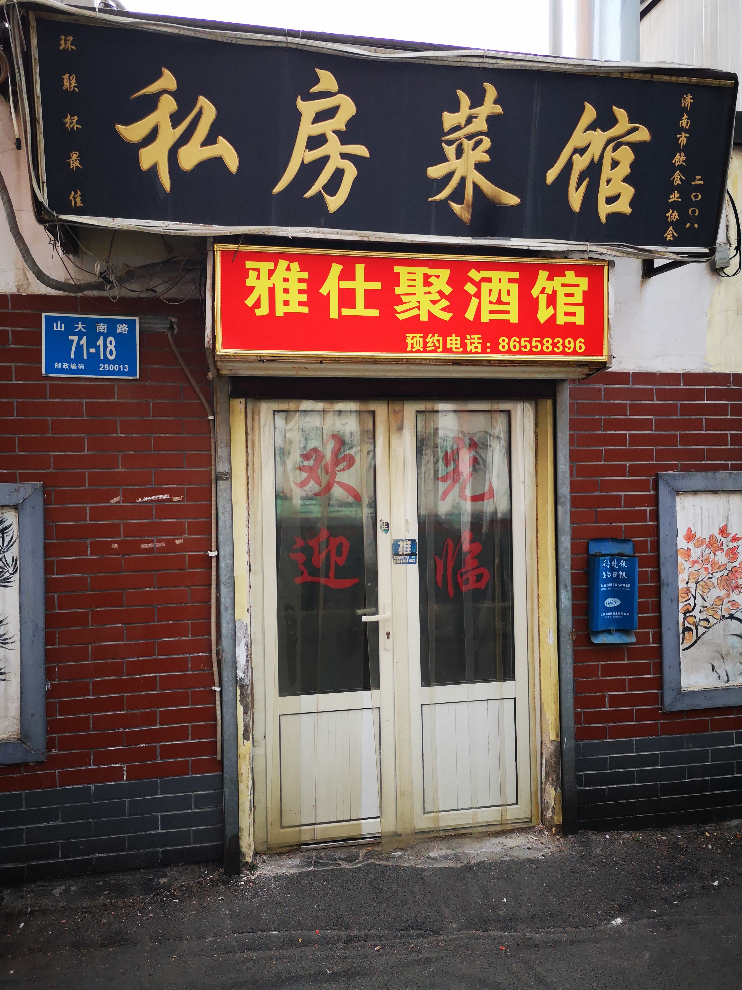这家店据说长得十分不起眼,但确实是鲁菜的第几代传人开的,藏在山大路和山大南路交叉口的某条小巷子里。的士司机不知在何方,于是我们在山大南路下车自己寻觅。。。。