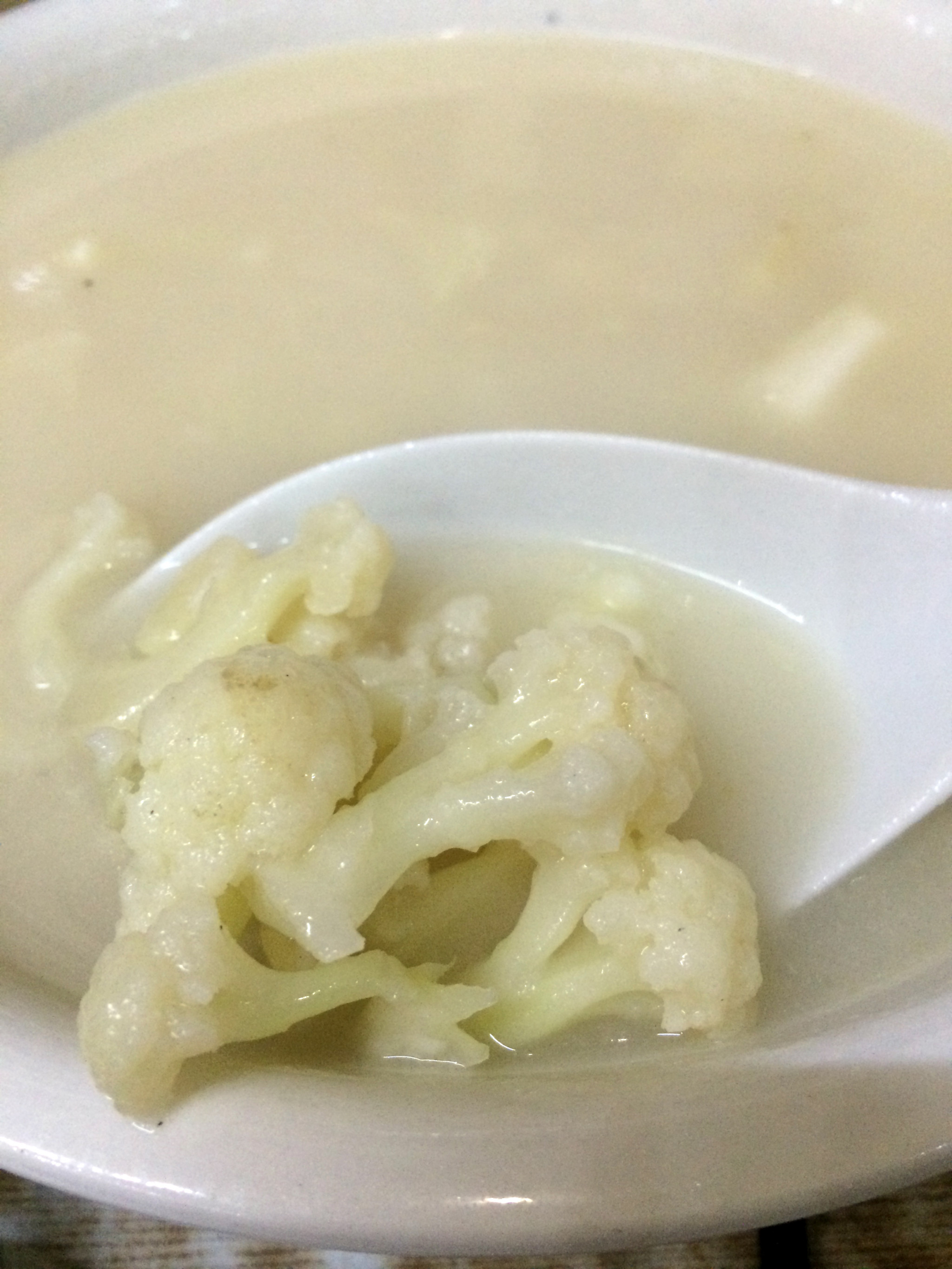另一道奶汤花菜,依然是奶汤打底,内容上从排骨换成素菜,能品出奶汤本身的浓醇鲜香。