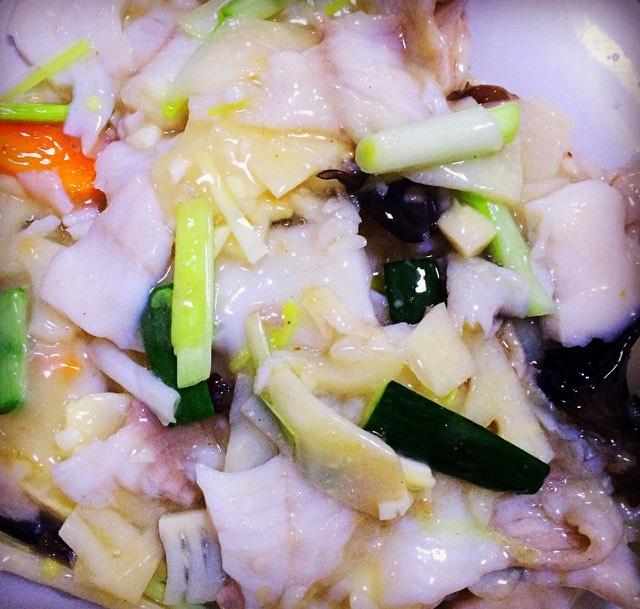 相比较而言,这爆三样就显得不那么突出了,里面的虾肉炒得很嫩,有点像港式点心虾饺的陷。。。笋片好像没有咱们南方的清香。。。