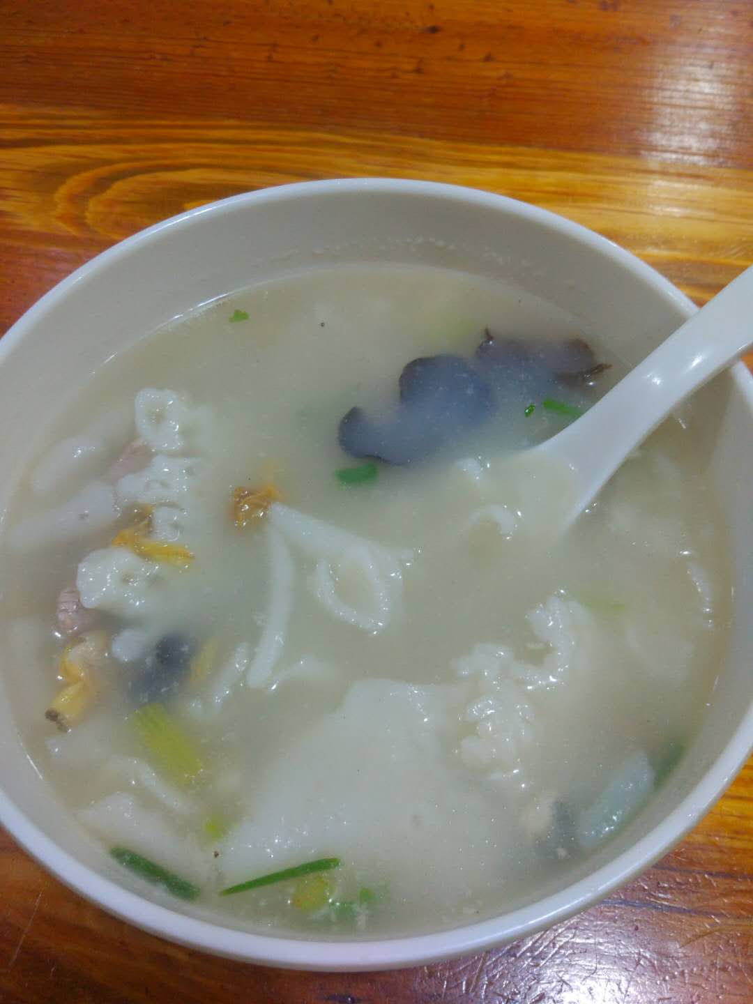 也就是福州人所说的锅边糊,味道相当好,配油条或油饼是绝配,