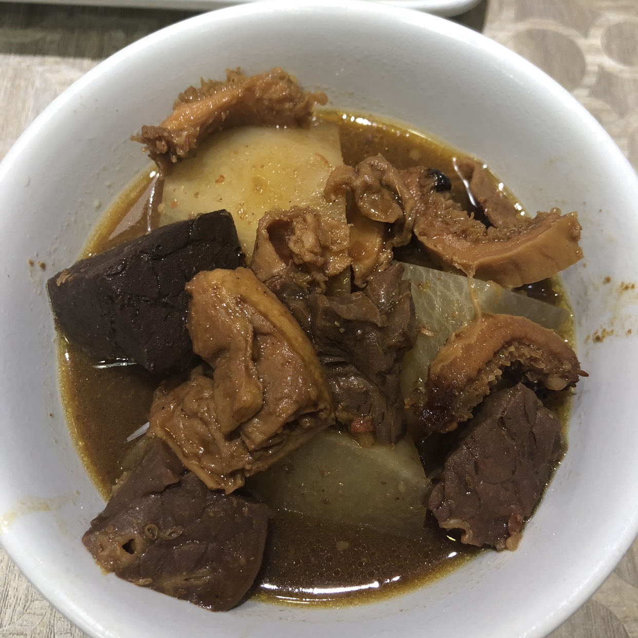 店面很小,在一个拐角上。取得时候人不多,但是每张桌上都有坐人。点了一份冠...