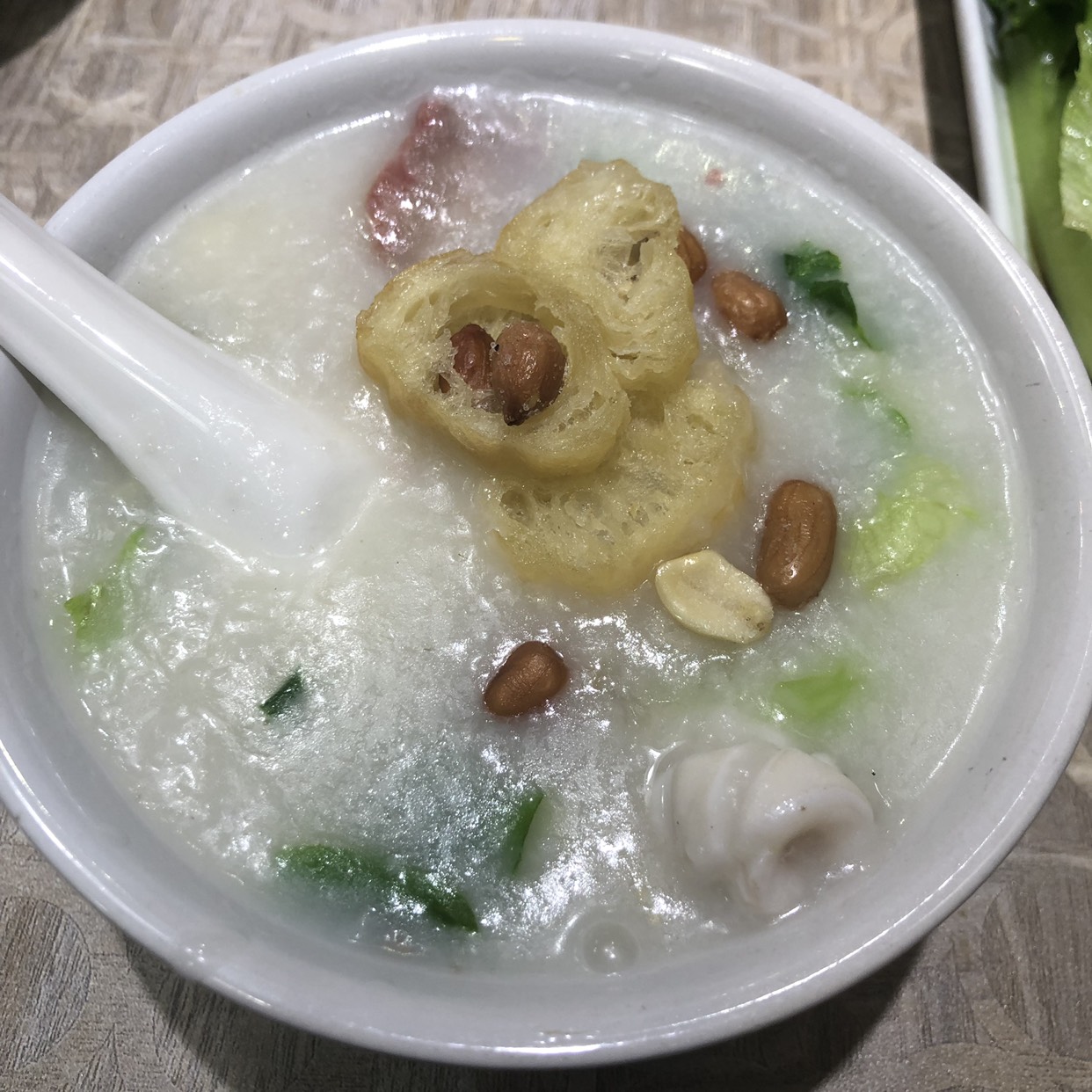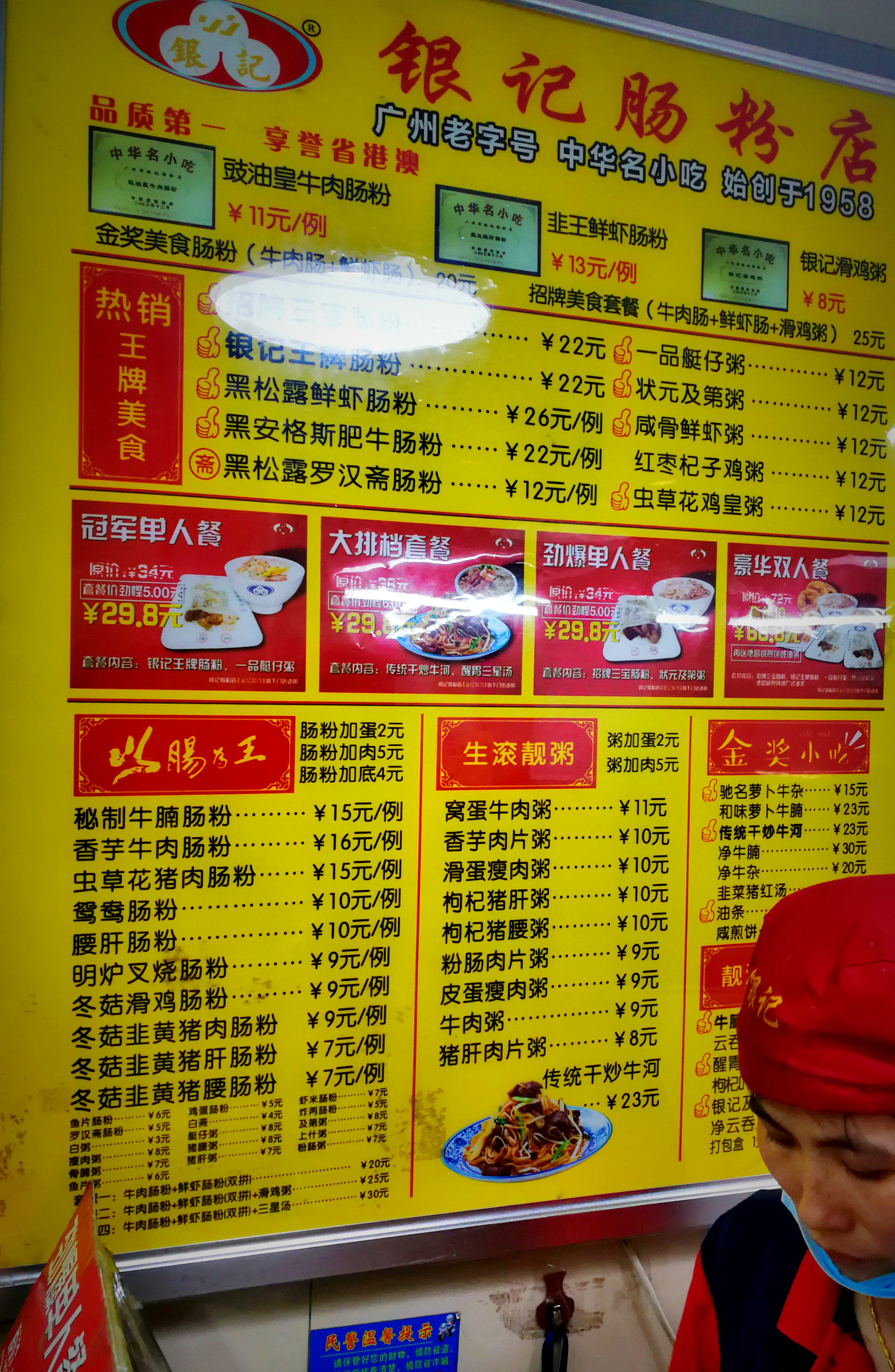 店面很小,在一个拐角上。取得时候人不多,但是每张桌上都有坐人。点了一份冠军单人餐(30元),有印记王牌肠粉+一品艇仔粥,正好都是招牌特色,就干脆不懂脑筋点了套餐。老板娘态度很好。