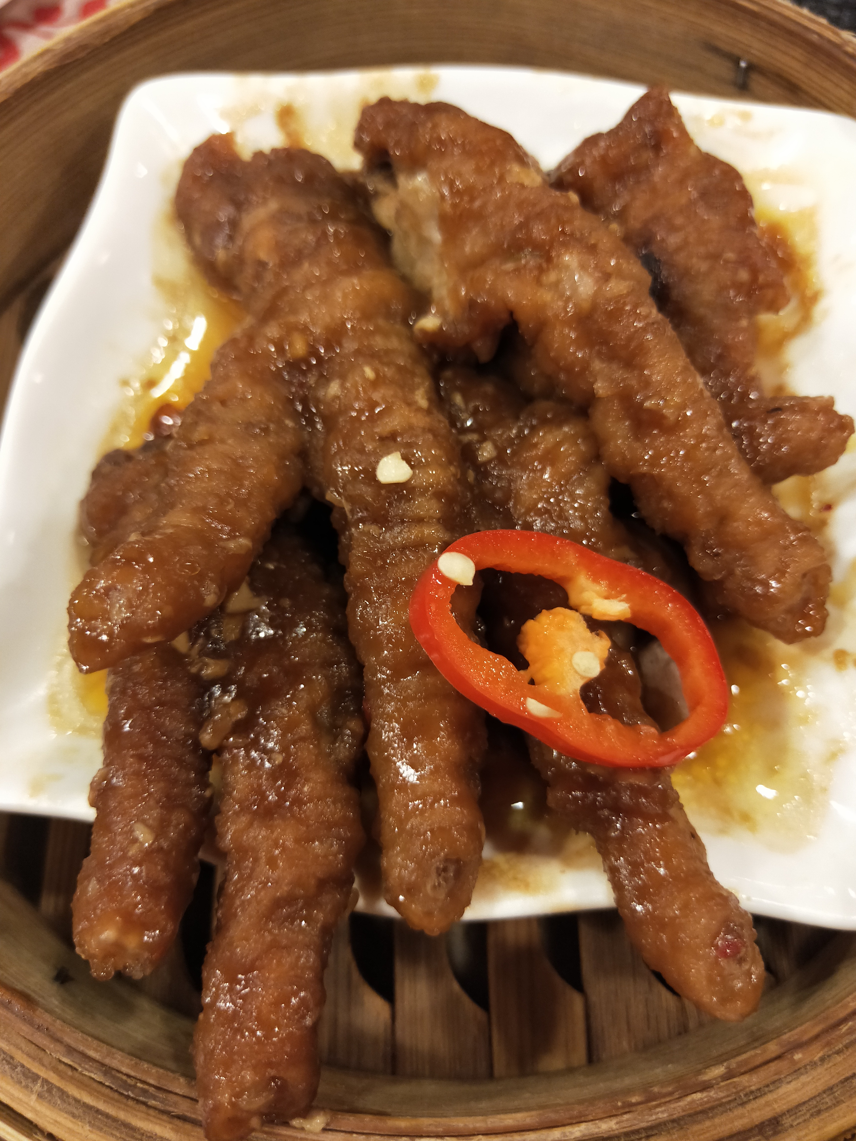 凤爪有一点点辣味,蒸得很烂,很入味,但没我想象的那么软。