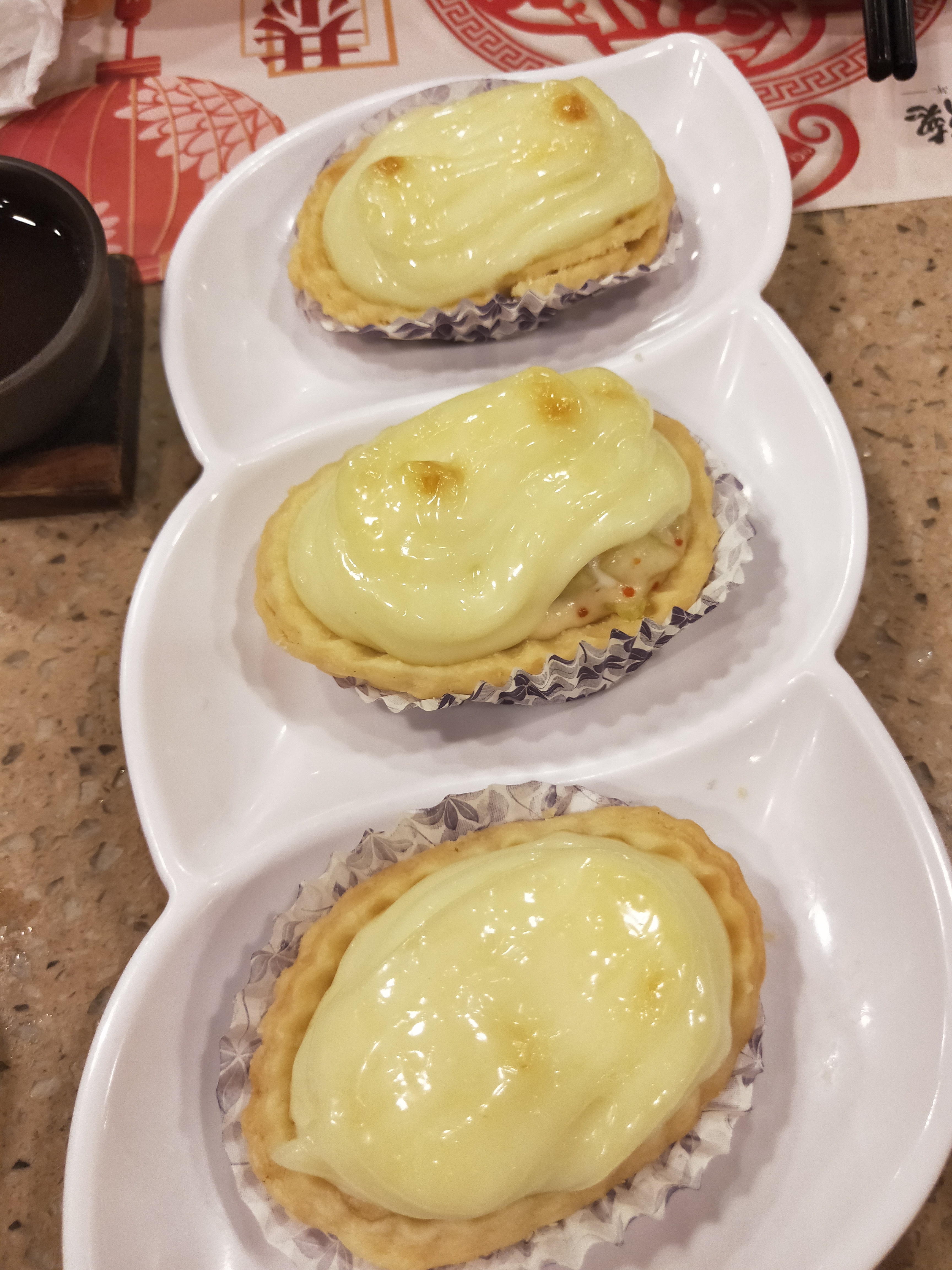 早上七点多去的人还不多 没排队哈哈哈,最好吃的是酱蒸凤爪!!!太惊艳了 酥烂到入口即化 蘸着吃更好吃 北方人觉得不就是个鸡爪子吗有啥了不起 改观改观!!三文鱼芥末挞,红米肠卷,萝卜糕,榴莲雪媚娘也好吃!