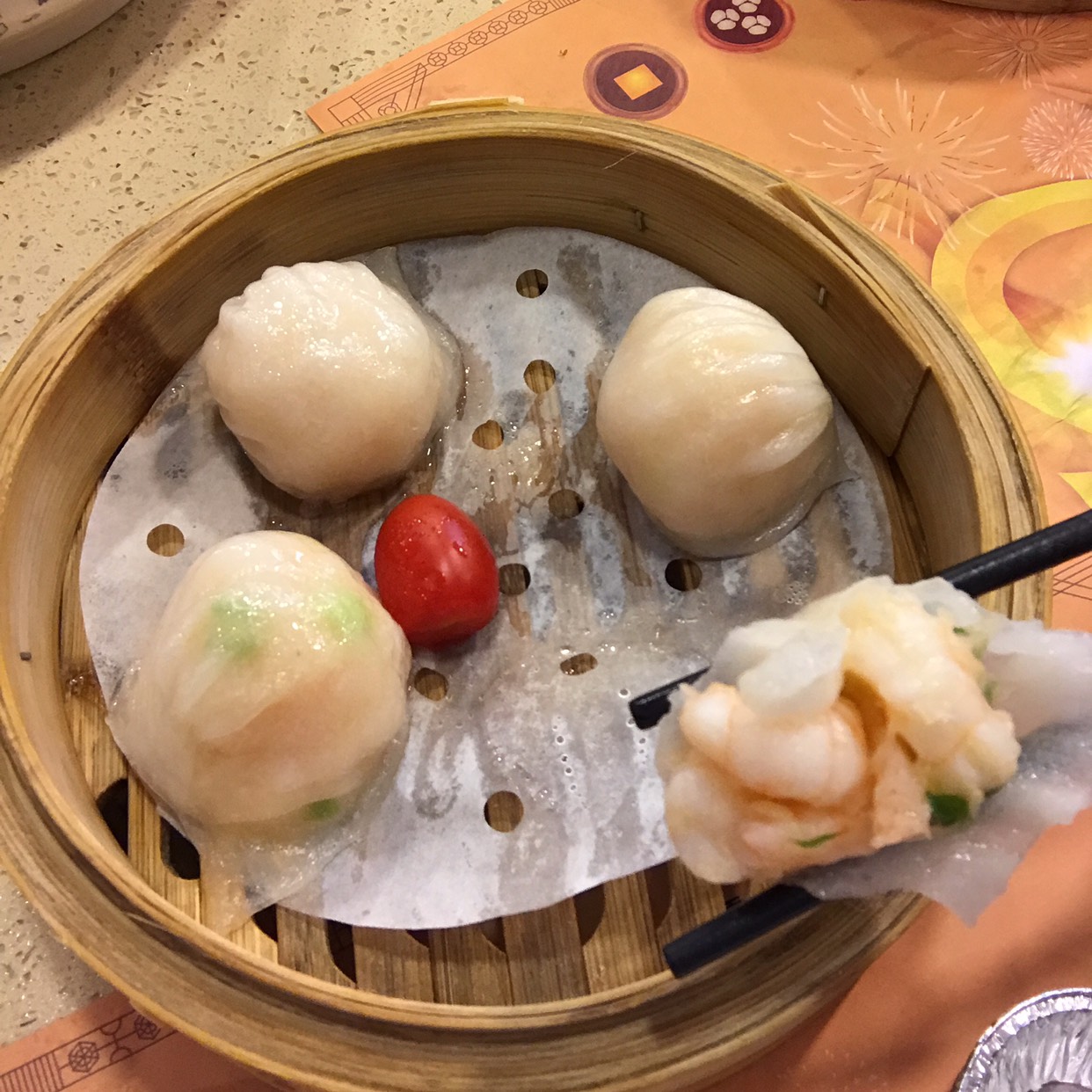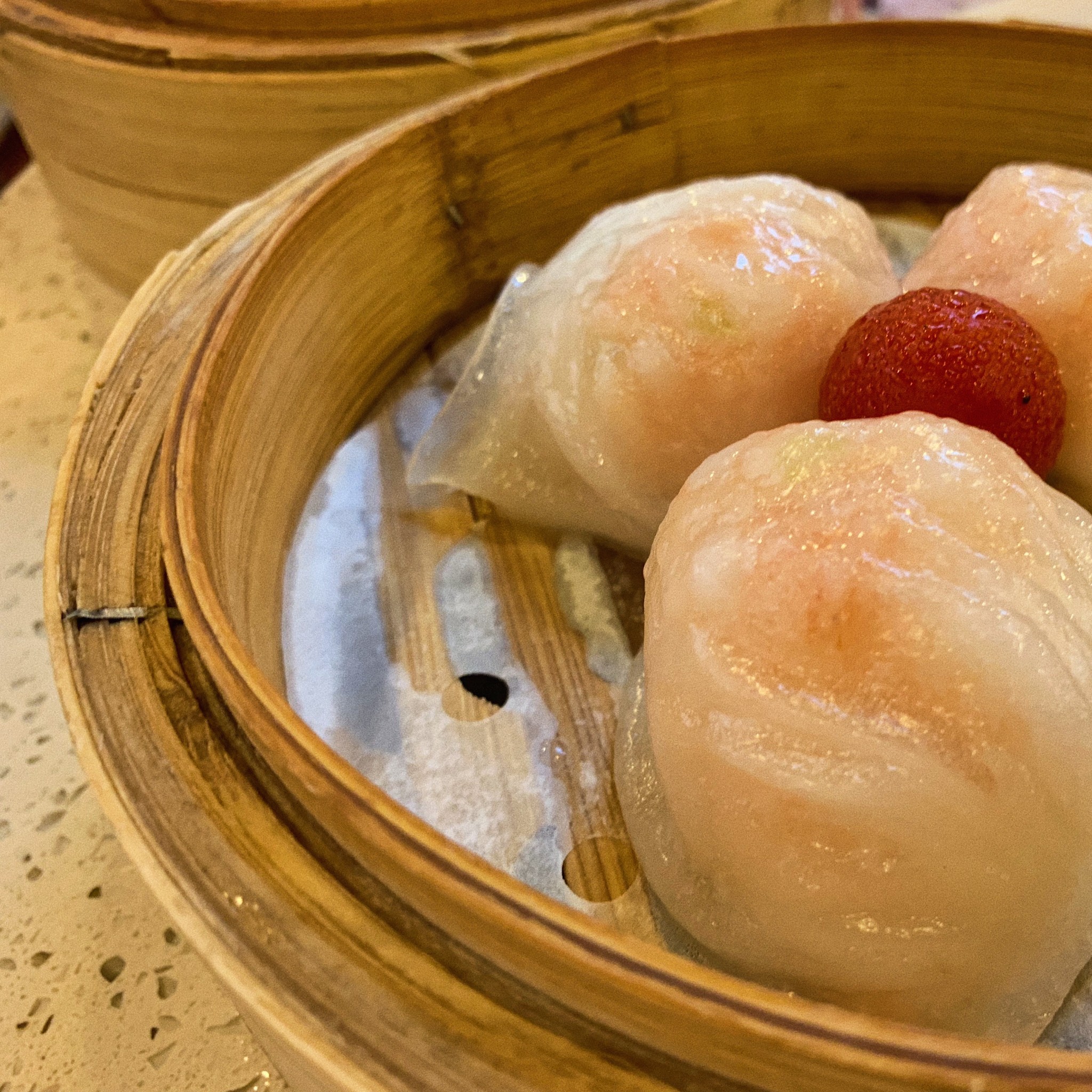 虾饺是现蒸的,不错!一份就是一笼四只。