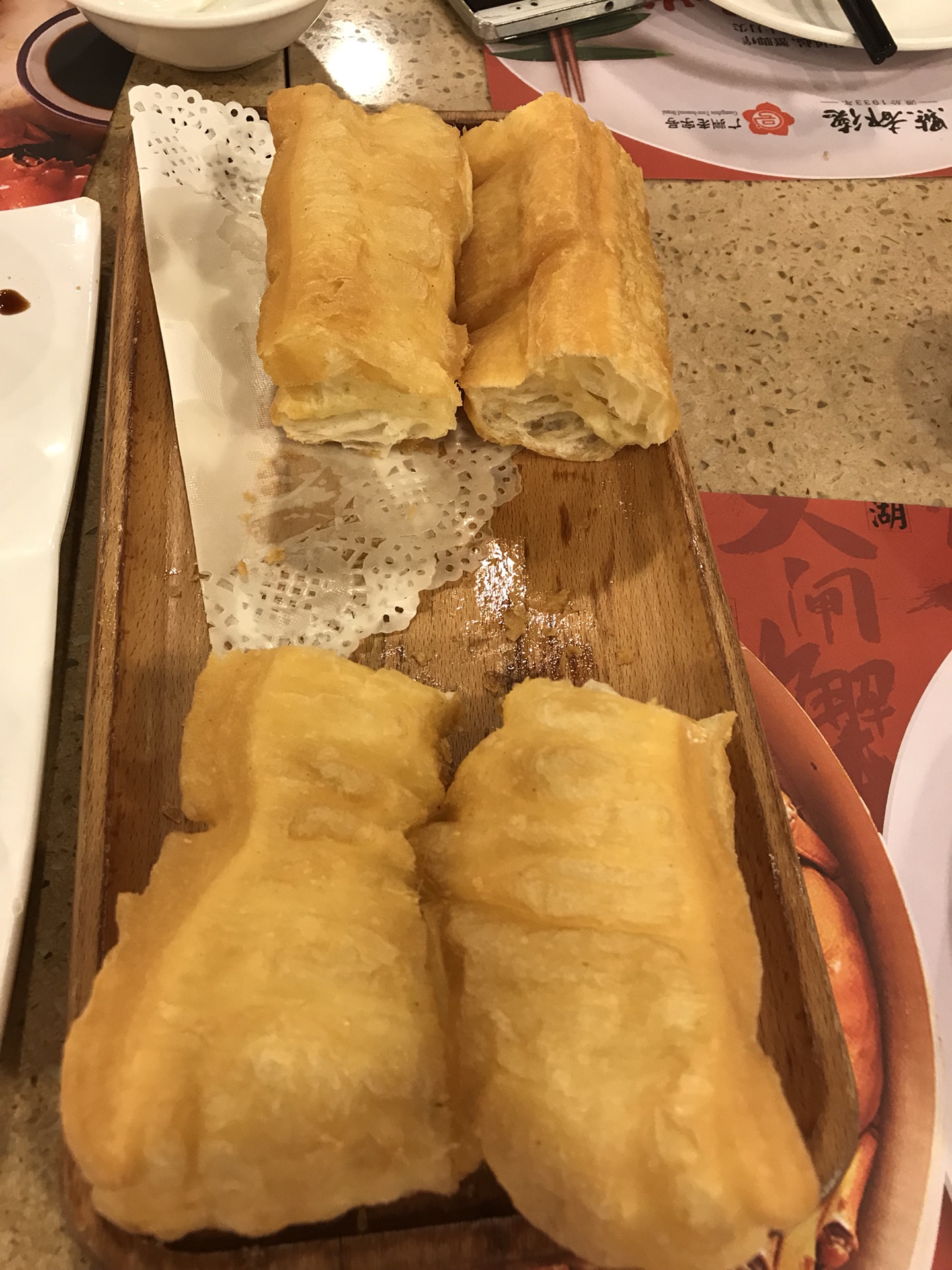 一共是六段的,孩子要点的,也挺喜欢吃,油条也确实炸得不错,就是得趁热吃比较好吃。