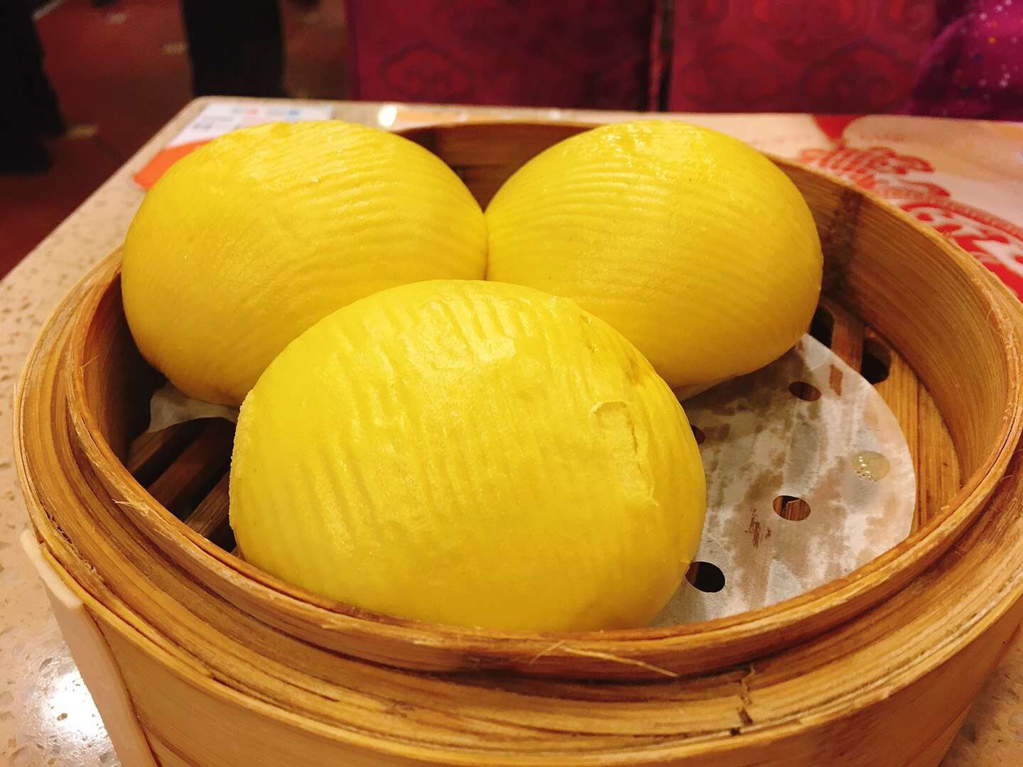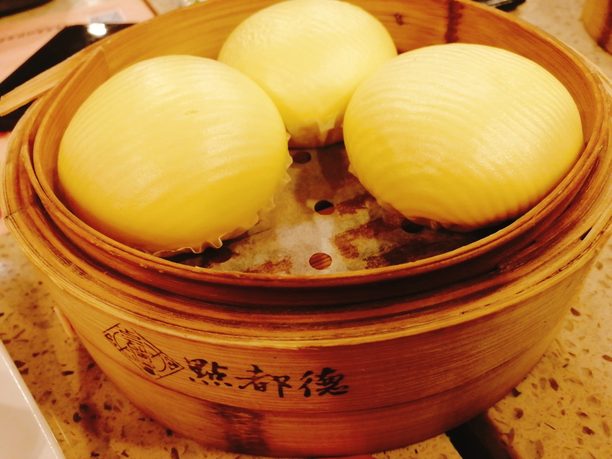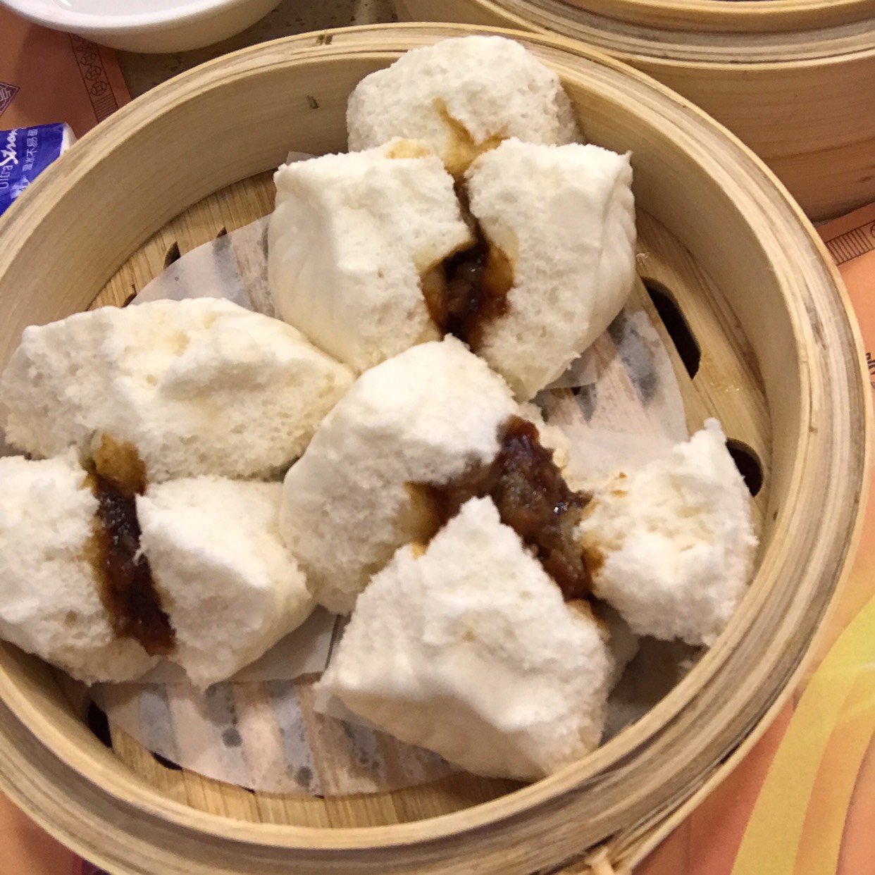 流沙包。来吃广式早茶怎么能不点流沙包~咬一口里面真的会有黄灿灿的馅流出来,甜甜的好好吃。