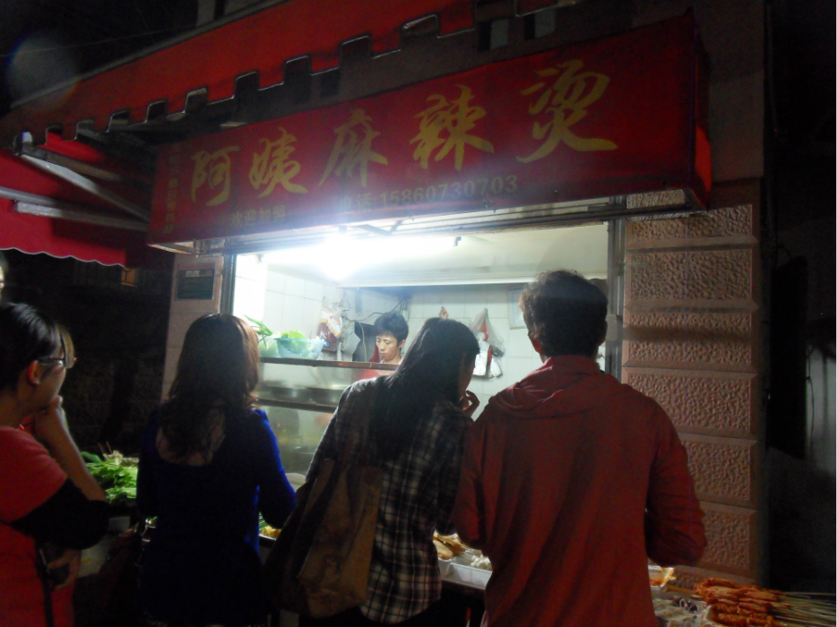 自已一人瞎溜达,碰到一家卖麻辣烫的街边摊,叫阿姨麻辣烫,看着买的人还挺多,大部分是学生,想着这应该比较好吃吧,就坐下来,开始尝一尝,果不其然,这是我吃过的最好吃的麻辣烫,他们家是干拌麻辣烫,真是好吃死了!
