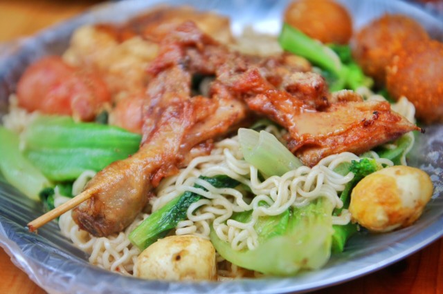 在顶澳仔猫街,一间小房子,有临时放的桌子和凳子可以坐,食材很多,蔬菜海鲜肉类冻品,油炸,制作过程不是很卫生,态度也不是很好,干拌的麻辣烫,加的花生酱,味道不错,但是吃多了会略腻,鸡翅泡面茄子都很好吃。
