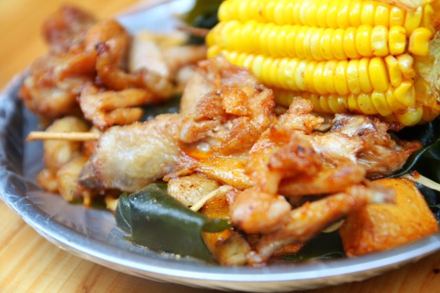猫街的明星店,一个小小的店铺,大家可以自选摆在台面上的各种荤素食材,炸好拌上秘制的酱料,就可以去旁边的小板凳上享受美味啦。经常会有很多人排队,店铺开的比较晚,可以说是厦大学生真正的“深夜食堂”。