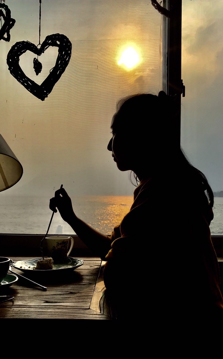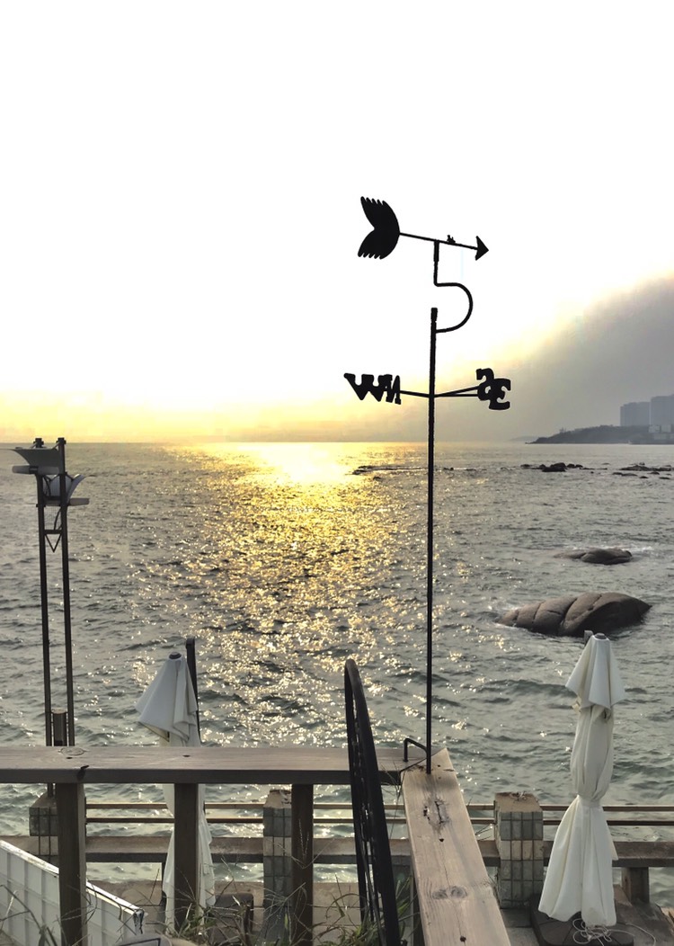 ☕是一家在海边的咖啡馆。算是一个网红打卡地。我们也决定去那休息一下。从奥帆中心过去很近,只需2km,但因为我们都有些疲倦了,就打滴滴快车过去了。到那大概是下午的四点,需要等位。大致等了20分钟就进去了。