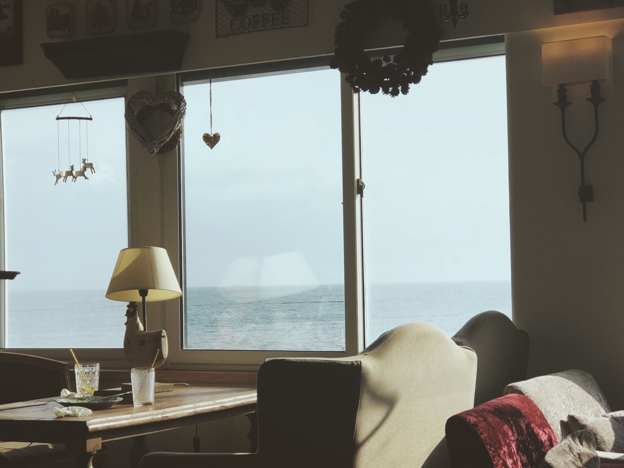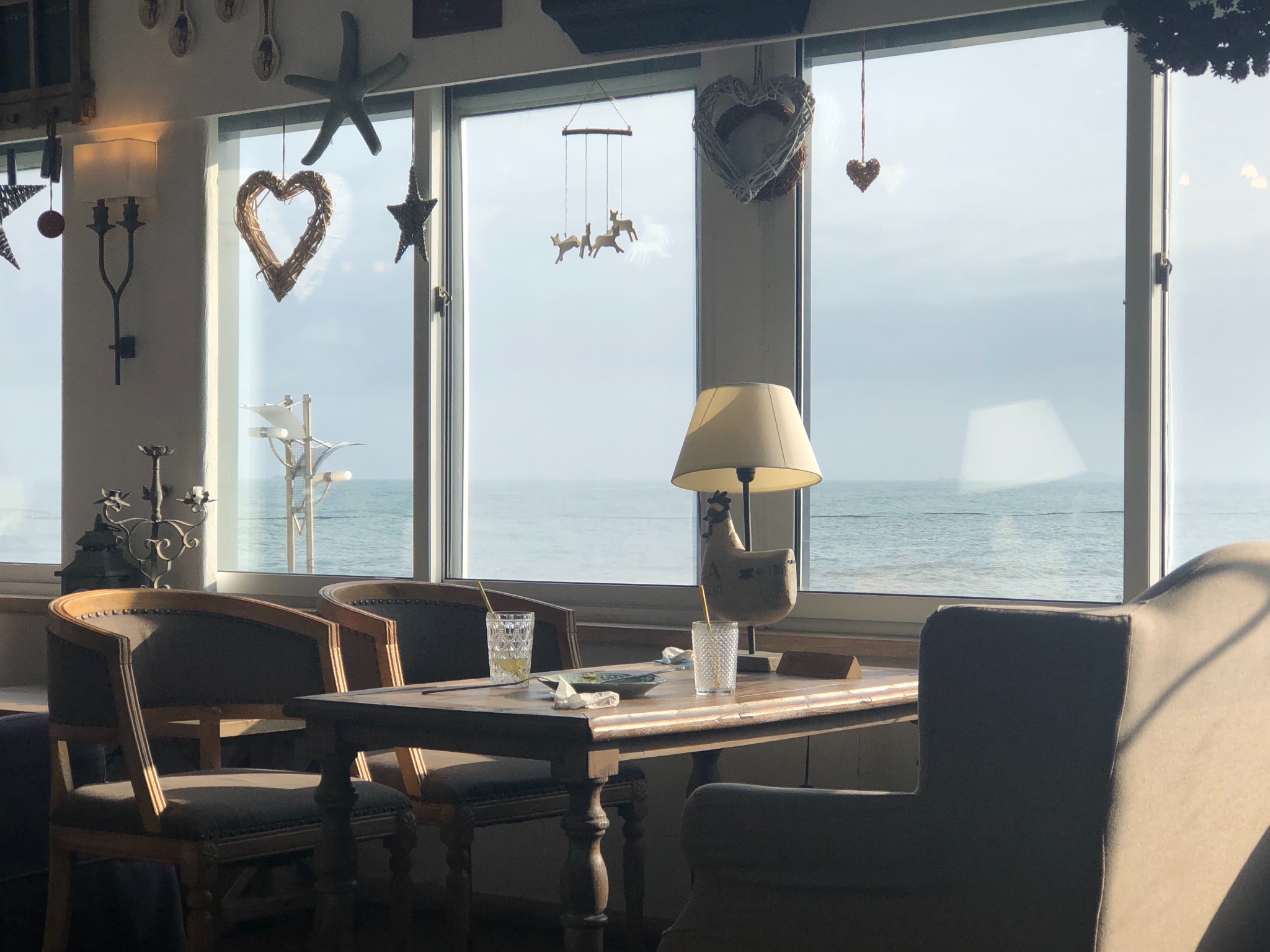 环境风格偏地中海风情,靠窗的位置视野很好,可以一览无遗蓝色的大海