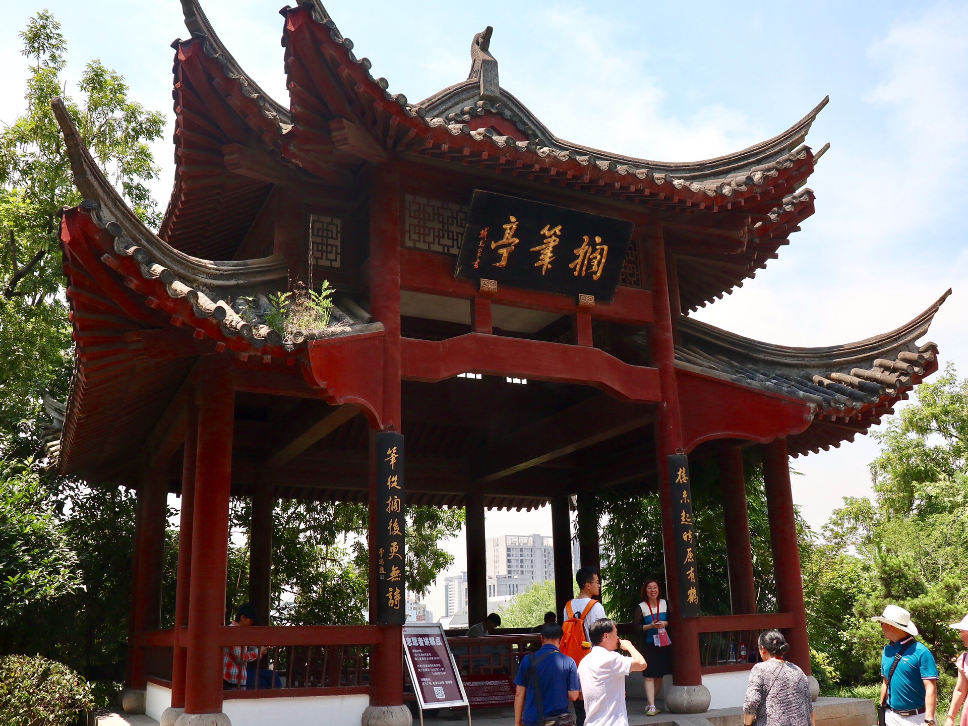 搁笔亭是位于武昌黄鹤楼之东,位于公园南区,在黄鹤楼以东132米、白云阁以西南159米处。白云阁西南的一个景点,以纪念盛唐时期黄鹤楼上“崔颢题诗李白搁笔”的故事。“搁笔亭”,牌匾由当代大作家臧克家题写,下面的对联是由著名的剧作家曹禺所写:“楼未起时原有鹤,笔从搁后更无诗”。