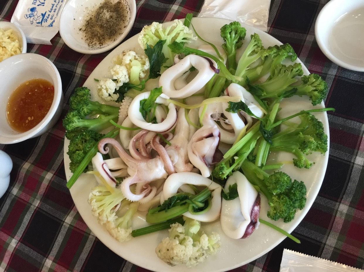 真的在越南吃的最糟心的一顿饭,点了一个酸甜鱿鱼,又给我推荐了一个酸甜猪肉????当两个菜一起上的时候整个人都懵逼了,猪肉里有鱿鱼,鱿鱼里有猪肉,真是你中有我我中有你,味道跟糖醋里脊超级像,而且服务特别不好,真的建议别来,还不便宜。