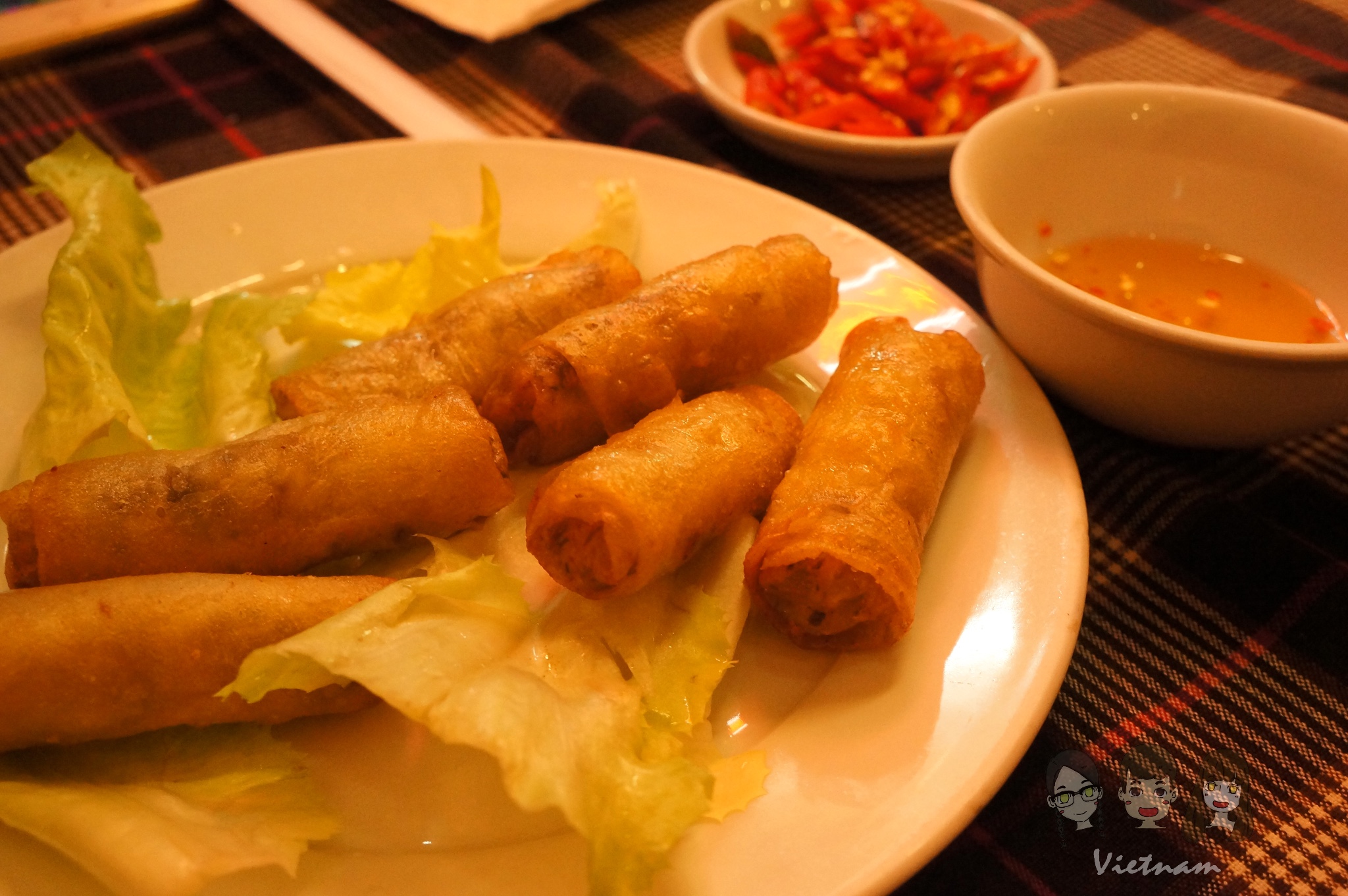 回酒店换了身行头出门找饭吃。头一天晚上的越南火锅让我们念念不忘,于是在trip advisor上找了另一家Nhat Ly,在大叻餐厅排名24。这家餐厅算是家庭餐厅一类的,就餐基本全是当地人。菜单越南语英语双语,服务员英语尚可。点了个春卷,牛肉火锅配了菜和面,份量很足,饭后赠送了香蕉,相当满足。