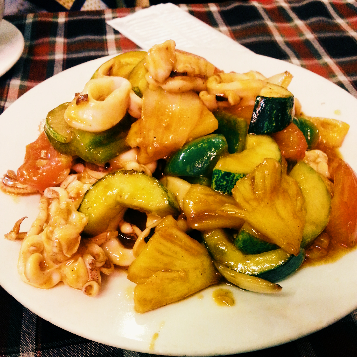 是家庭式餐馆,点了一炒饭,虾还有酸甜鱿鱼圈,我觉得挺好吃的。炒饭里面掺杂了一些脆脆的不知道是什么东西,不过口感挺新鲜的哈,可以尝试一下;虾嘛,感觉不太入味,不过还挺鲜嫩,不功不过吧;酸甜鱿鱼圈就等同于酸甜排骨的口味,鱿鱼挺新鲜的。