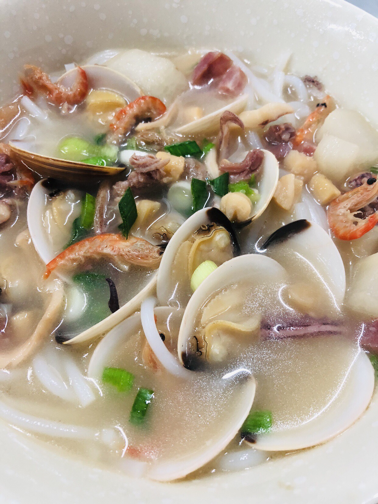 水圆仔是广州花都区(洪秀全故乡以前叫花县)当地特色食物,解饿杂货铺的出品一级棒很有诚意,用海鲜及各种海味跟骨头煲出来的汤底鲜的不得了,有白贝有虾米有鱿鱼干有腊鸭瘦肉拉肠萝卜等等等
