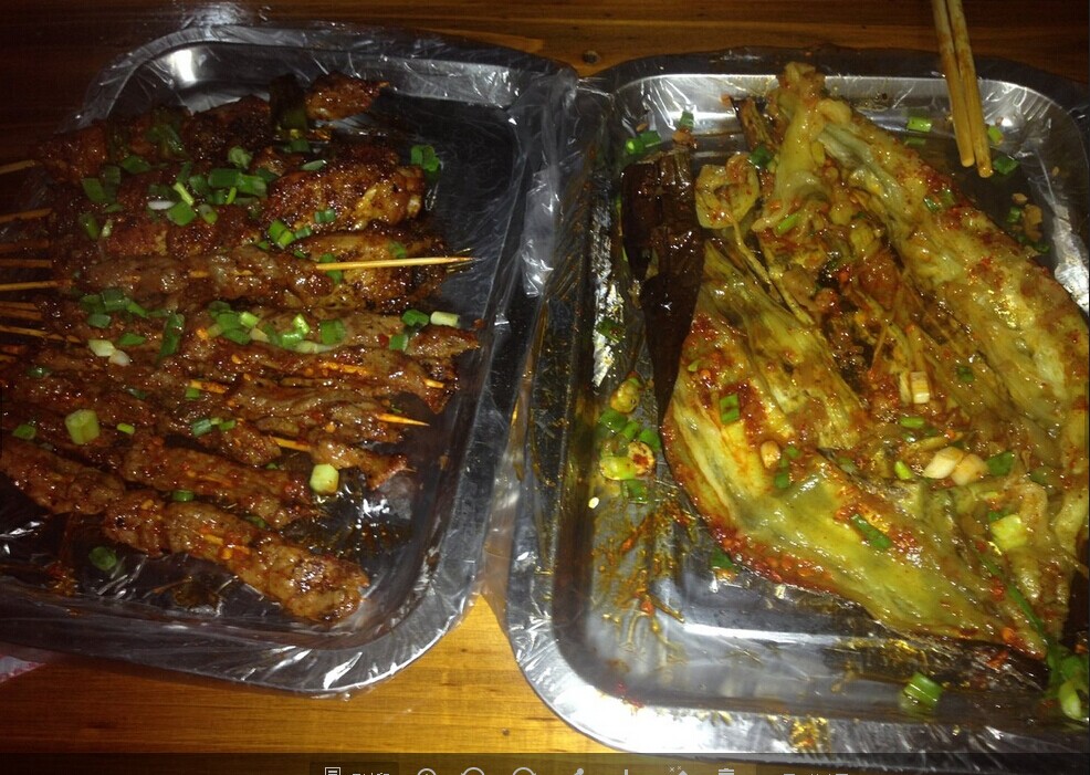 这家可是不管成都人和游客都去的!!当天没有游客,才坐了几桌而已烤串是自选的哦,没有菜单推荐:脑花一点都不腥,有点糯糯的,可以试试兔头成都朋友说热的上面满满料才好吃,这个是冷的蒜蓉茄子茄子切两半放在铁盘撒上蒜蓉烤完超香的各种烧烤我吃过最好吃的烧烤和北京的有点不一样必点:烤五花一定要点一定要点一定要点,好吃死了!!外面烤到又香又脆,焦焦的里面真的真的不腻,吃到停不下来,开始服务员推荐还觉得有点肥怕怕的只拿了五串,好后悔玉米一粒一粒串成串,脆脆甜甜的,好吃哦蔬菜四季豆啊绿菜菜都超好吃!!其他:牛肉啊,掌中宝啊,郡肝啊乱七八糟也拿了一堆,都蛮好吃在一个商场下面角落,环境还好蛮干净,推荐推荐推荐推荐两个人吃到肚歪还要了啤酒,才144