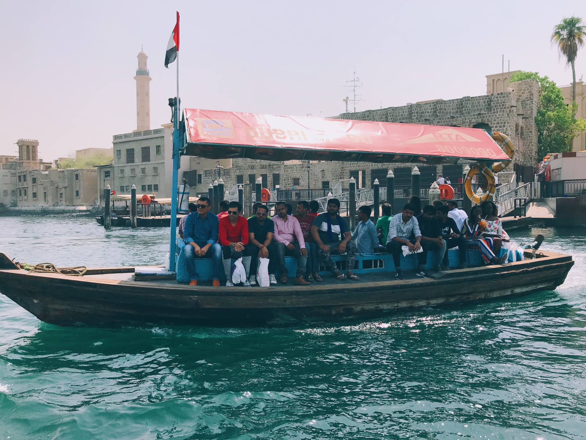 上船买票,只需要1迪拉姆的票价,虽然有点晒,不过是迪拜传统文化的一次不同体验,它站点不多,只连接迪拉黄金市场与杜拜香料市场和国家博物馆之间。