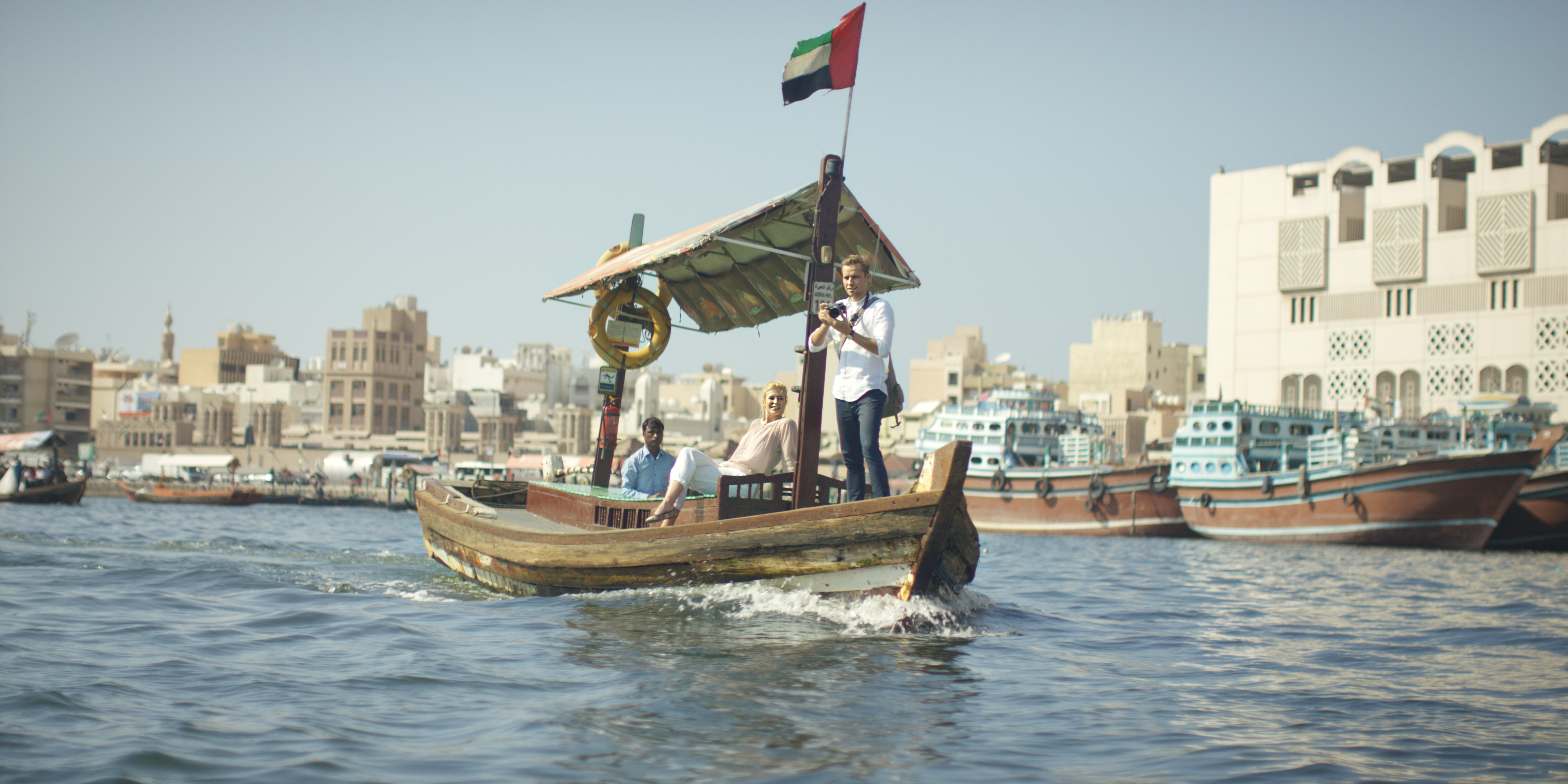 迪拜河曾是这座城市商业的起源中心,现如今依旧充满了生机,货船在河上来来往往,进行交易和货物买卖。