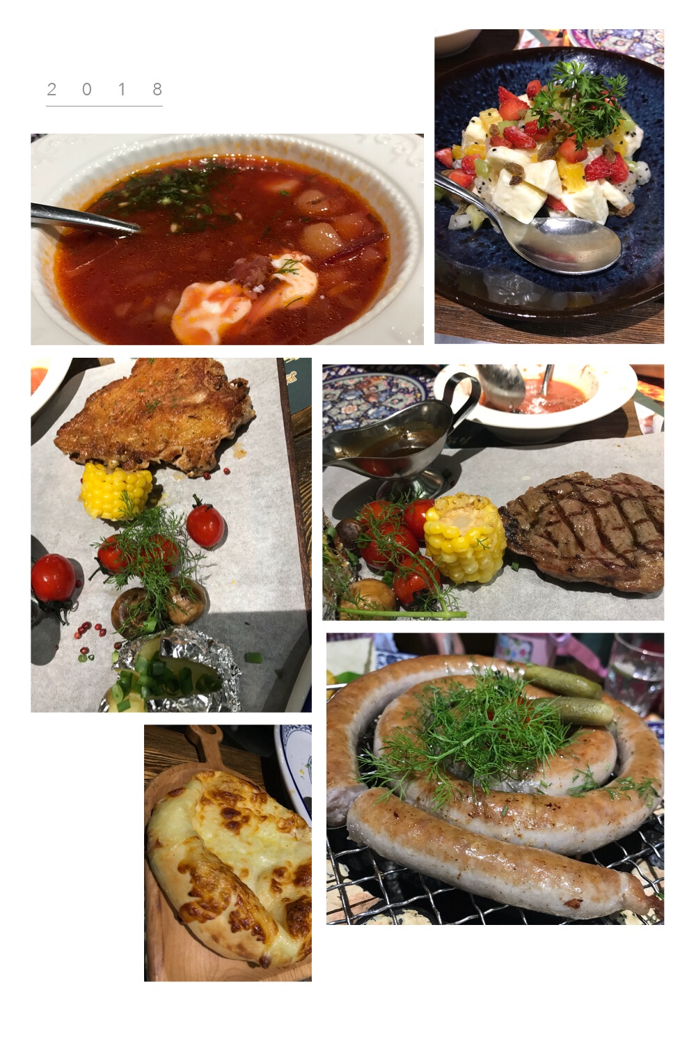 我们的菜单:乌克兰红菜汤,俄式碳烤香肠,卢布里奶酪包,水果沙拉,牛排,鸡排,卢布里烤大串。菜量很大,价格人均差不多80左右。