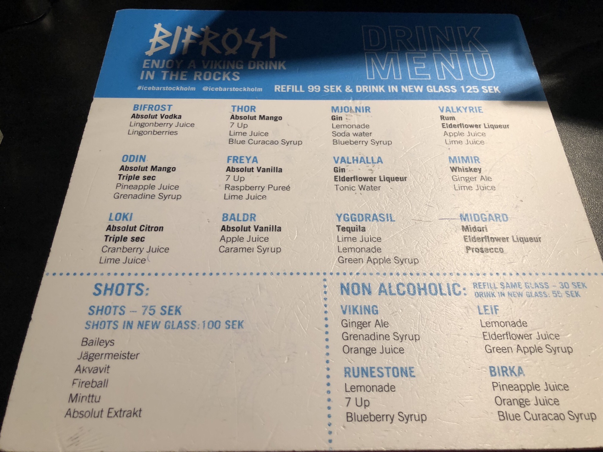 如果是计划要去ice hotel的就不用来这里了,因为ice hotel就有一个ice bar。如果只是在斯德哥尔摩做短暂停留,就可以来这一游。来一个冰杯的vodka。