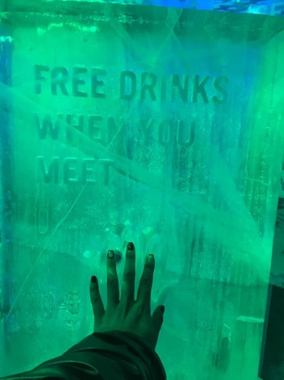 走了很久的路,终于找到了,南方的小伙伴超级开心。值得一去吧。两个人400多瑞典瑞郎。进去喝了一杯苹果汁。就开始在里面照相,我以为是有音乐那种的酒吧。进去就是一屋子的人,全部在那拍照什么的。不过还算蛮有创意的,毕竟是第一家永久冰吧~