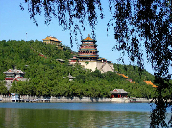 ·南对昆明湖,背靠智慧海,以其为中心的各建筑群严整对称地向两翼展开,形成众星捧月之势,气派宏伟。