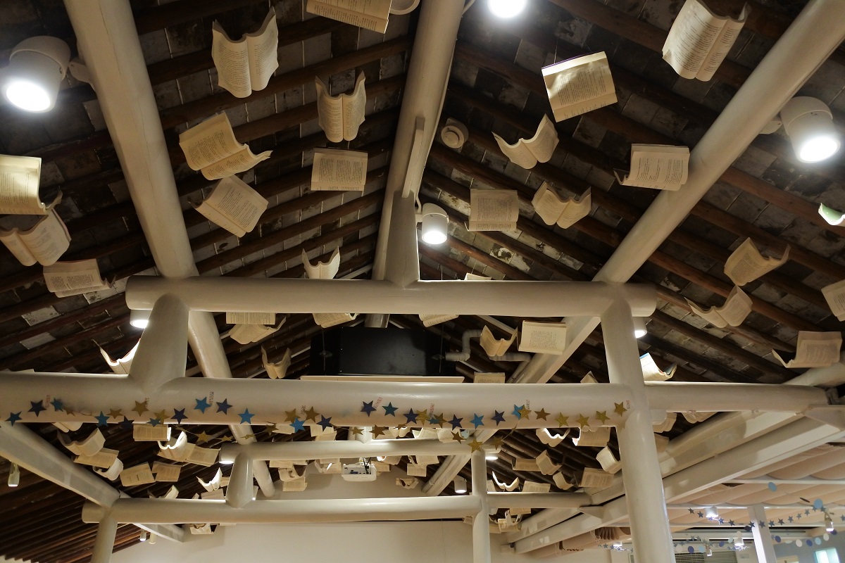 内部装修也是充满文艺气息特别是二楼的房顶上满天的书,非常漂亮