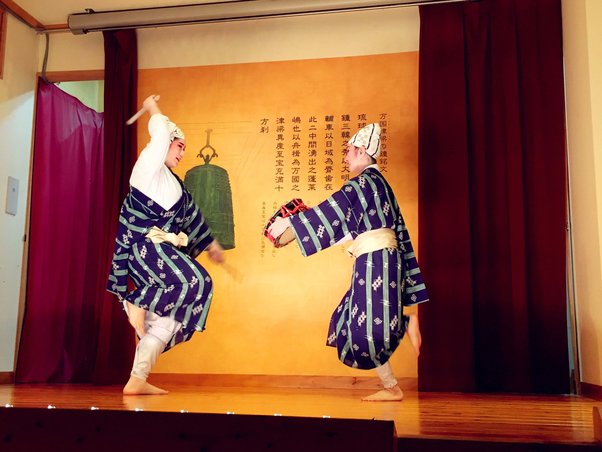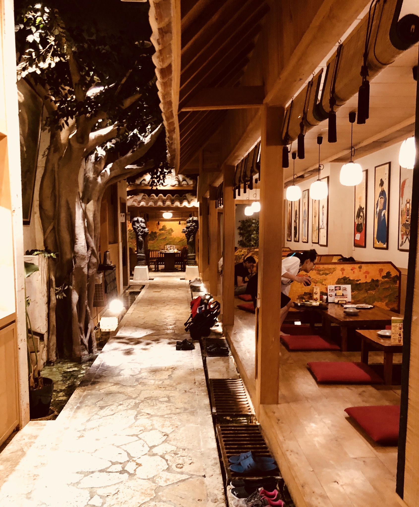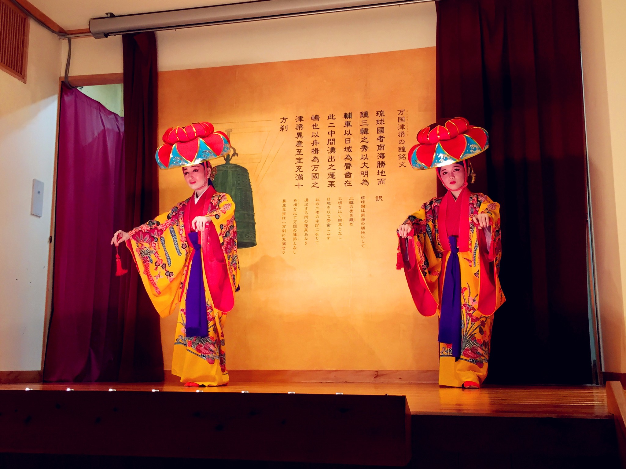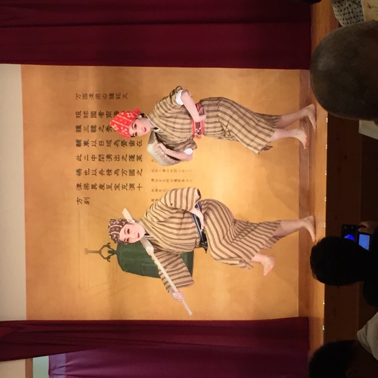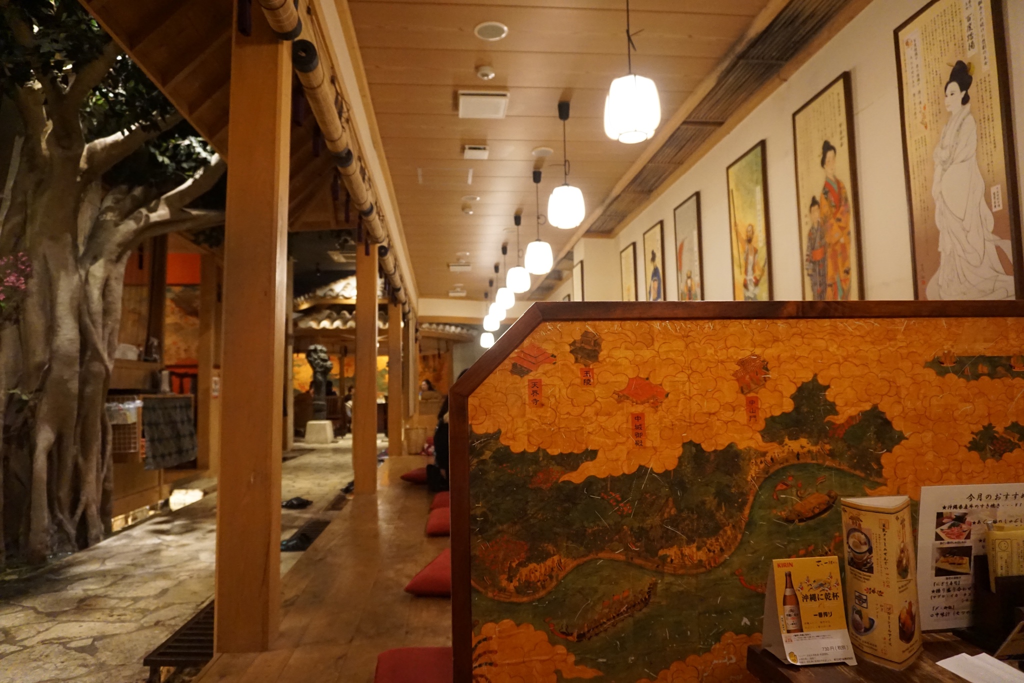 为了不排队,我们直接去了三楼(加收800円服务费)。首里天楼主打冲绳特色,进入就餐区都需要脱鞋。三楼满墙色彩丰裕的装饰画,有中国有琉球。点菜时,指着有中文有图示的菜单与服务员沟通还算顺畅,但是上菜很慢,而且服务员漏记了菜品。餐前的纳豆意外的好吃;刺身中章鱼口感最好;海葡萄难以形容不过不是难以接受;特色的炙肉寿司中规中矩,猪肉的比牛肉强;冲绳红烧肉有点东坡肉的味道;牛排炙烤后味道中平,但是只有四块,完全不够吃。七点,舞台上准时开始了琉球俑舞的表演,还好不是琉球村里那种极慢的舞蹈形式,要欢快活泼得多,带着乡土气息,载歌载舞,很有气氛