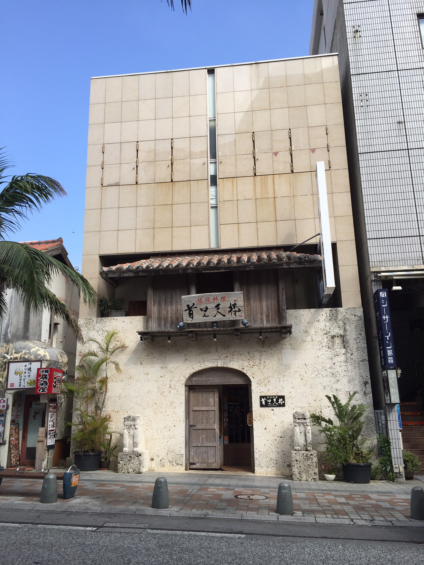 这家店挺适合游客来的~装修非常得古色古香,墙上都是古画~真赝不明。三楼是有表演的榻榻米座位~表演是每天晚上19:00和20:30各有一场琉球舞蹈表演。看表演要另付800日元。首里天楼的晚餐套餐味道也还可以。吃完饭,欣赏完舞蹈,还和演员合了影,满意而归~