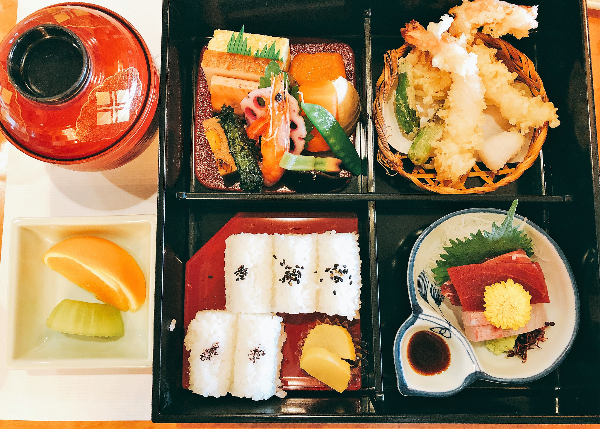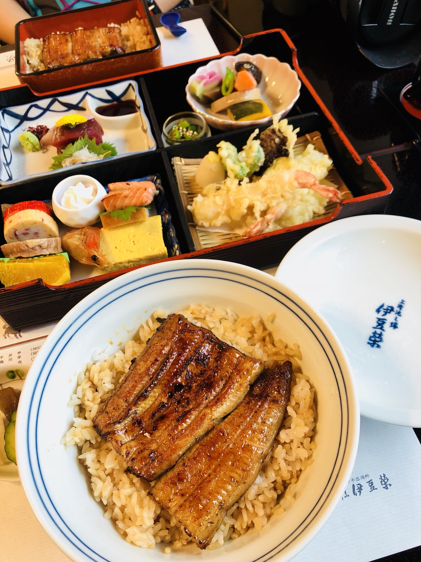 伊豆荣,老字号,招牌是饭盒装的鳗鱼饭,东京应该有三家,个人认为上野公园里面的那家环境最佳,下午一点多到的,先在前台登个记,然后出去门口排队等着叫名字,一楼是现代的桌椅,二楼是传统的榻榻米,自然上二楼,点餐都是穿和服的小姐姐跪式服务。招牌鳗鱼饭果真不错,鱼肉软嫩,虽是莆烧,但一点都不甜腻,米饭也是一粒一粒的。推荐来个套餐,基本上饭菜刺身天妇罗腌渍果子全都有了,精致又好吃。缺点呢就是盘腿吃饭真心累。。。