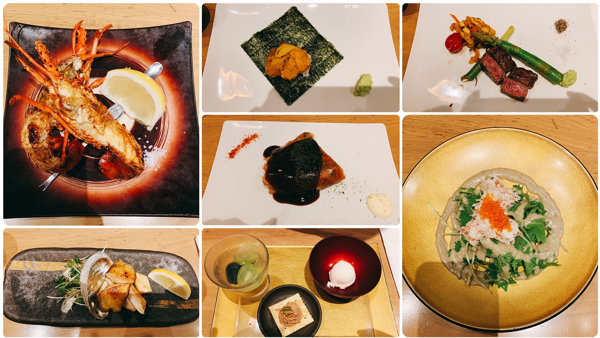 用料是非常豪华,菜色包括龙虾、海胆、鹅肝、和牛等,味道没有电视节目里主持人形容的美味,还可以吧。