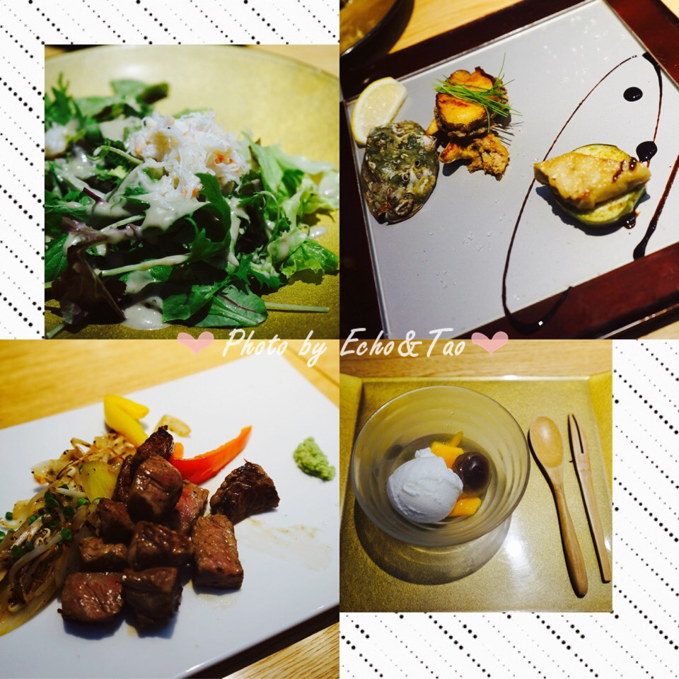 follow xfun过来的。提前预约了靠窗的位置,马马虎虎看看东京的夜景,一举两得~前菜的蟹肉沙拉 主食的牛肉 龙虾都很好吃 特别值得推荐的是茶泡饭 真的很特别!所以说 点套餐还是很划算的!