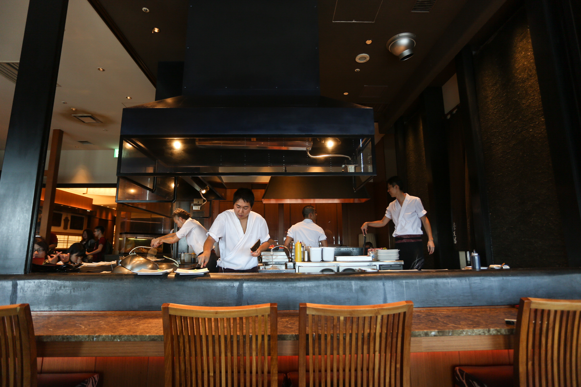 这家店是来日本之前,在国内看我们大陆产的美食节目《XFUN吃货俱乐部》得知的,在节目里,主持人大力推荐这家店,让人看了忍不住食指大动,于是我们慕名前去。这家店就在天空树旁边,紧挨着一起,那个购物中心Solamachi的三十一楼。挨着窗户的位子视野很棒,但是一般需要提前预约。是一家高级铁板烧店。我们两个人合点了一份那家店最贵的豪华套餐,一万多日元。用料是非常豪华,菜色包括龙虾、海胆、鹅肝、和牛等,味道没有电视节目里主持人形容的美味,还可以吧。这家店的服务做得确实细致又到位,我与朋友两人合点了一份套餐,所有的主菜都被细心的分成了几乎等额的两份,连饮料都被细心的分成了两份哦!图分别为海胆、鹅肝、和牛,都是日本料理最顶级的食材之一。PS,朋友说,这家店的厨师很帅。
