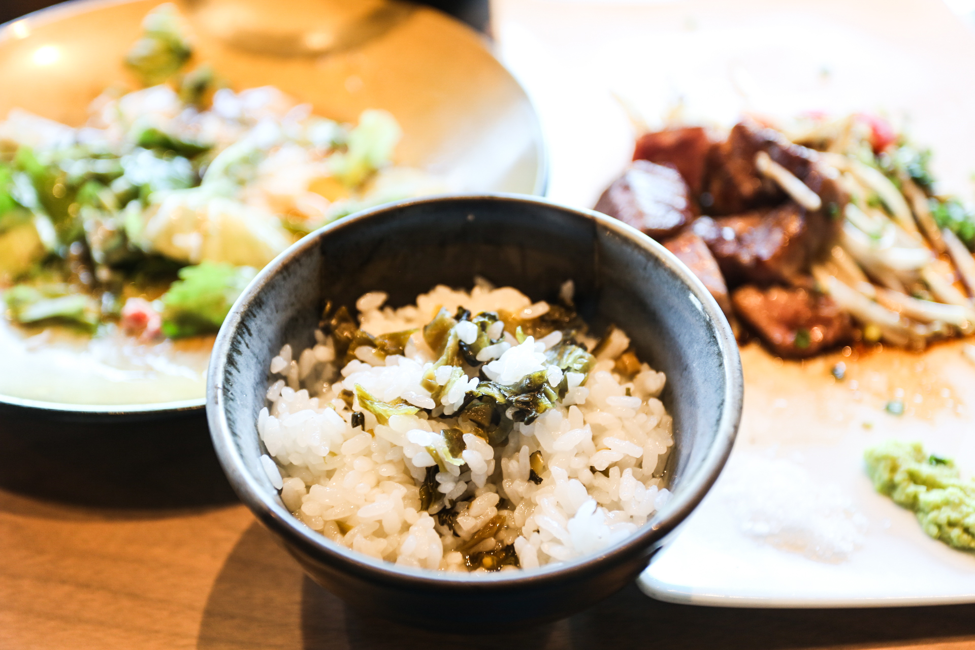 前菜的蟹肉沙拉 主食的牛肉 龙虾都很好吃 特别值得推荐的是茶泡饭 真的很特别!所以说 点套餐还是很划算的!