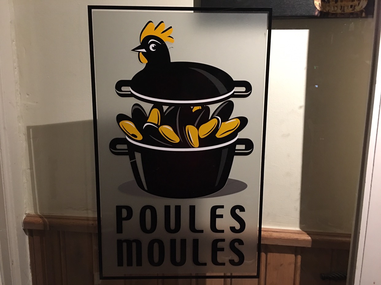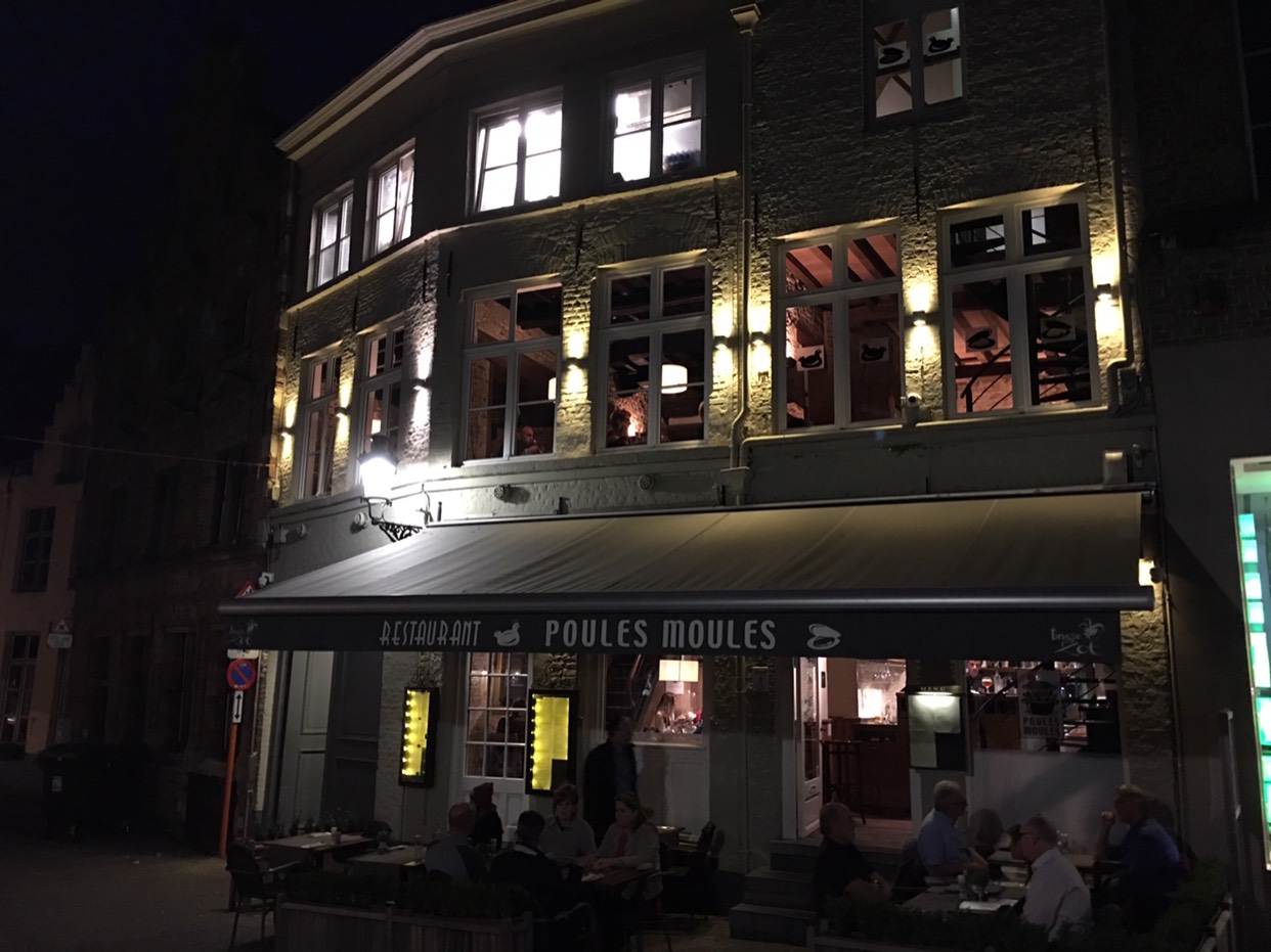 这家比利时菜Poules Moules餐厅, 坐落在靠近镇中心一个古色古香的地方, 餐厅一共有两层,如果在楼上用餐,还可以欣赏街景。提供非常新鲜美味的青口, 奶酪鸡肉炖菜,巧克力鸡肉汤, 牛排, 白葡萄酒, 比利时啤酒, 每一份菜都会陪一大份薯条,分量真的很足。服务员很有耐心又有礼貌,给了我们很多建议。