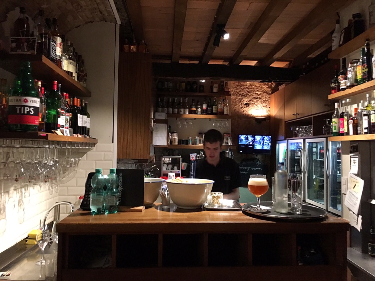 点了一锅青口,选择白葡萄酒煮的,里头还有少许芹菜,味道不错。搭配的面包很有嚼劲,薯条配美乃滋完美。另外配了一杯水果味的啤酒,好喝。