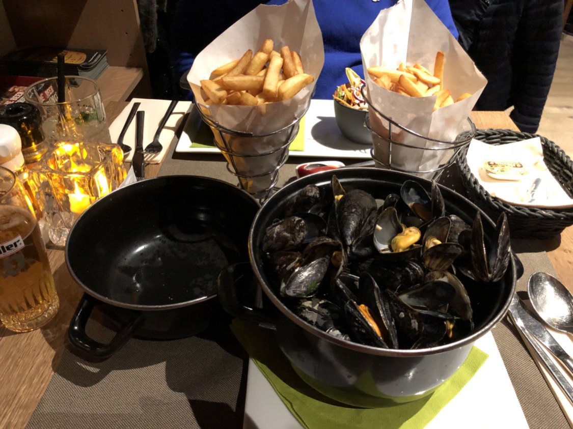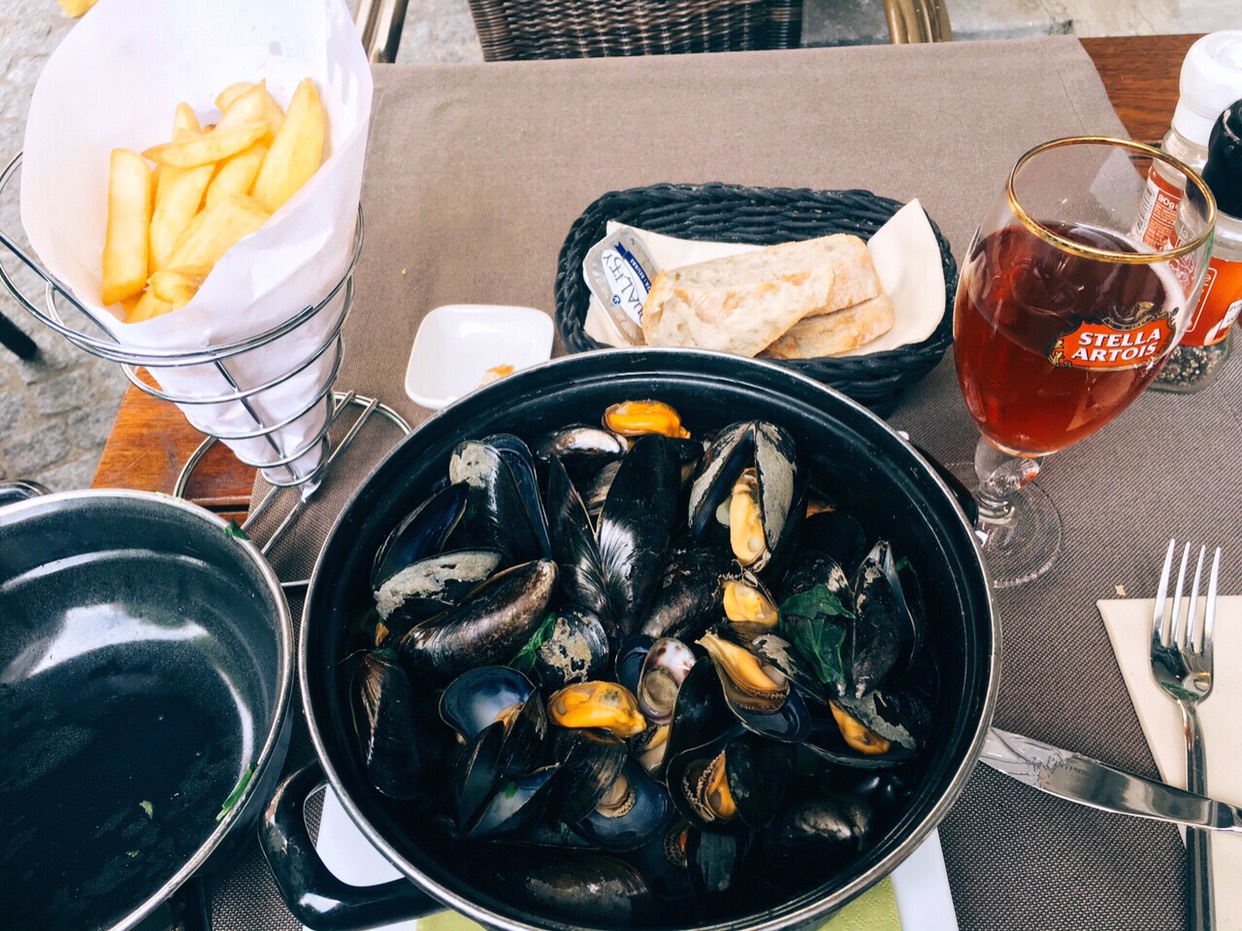在布鲁日的一家餐馆点了套餐,估计就是针对游客的,有贻贝,薯条,还有啤酒。当时没觉得特别好吃,但现在回想还是很好的