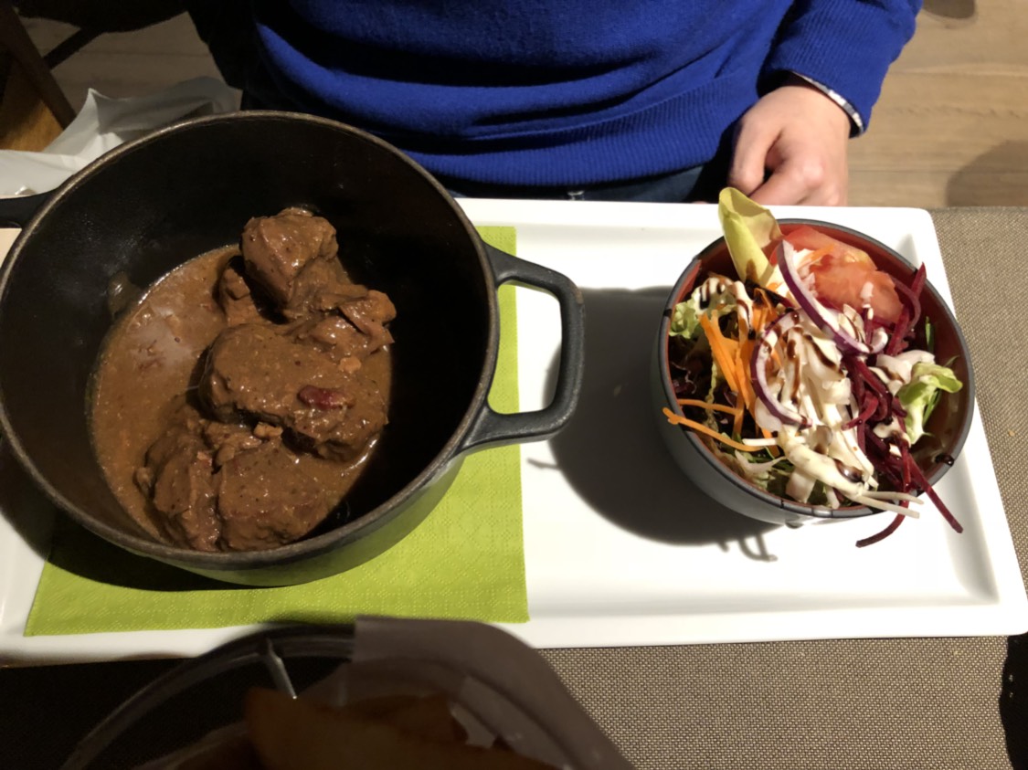 位置很好找,mussel是一大特色,点了白葡萄酒口味,很赞。还有一份套餐,主菜是炖牛肉,也是比利时特色,每份都配薯条,很满足。喝了无酒精啤酒