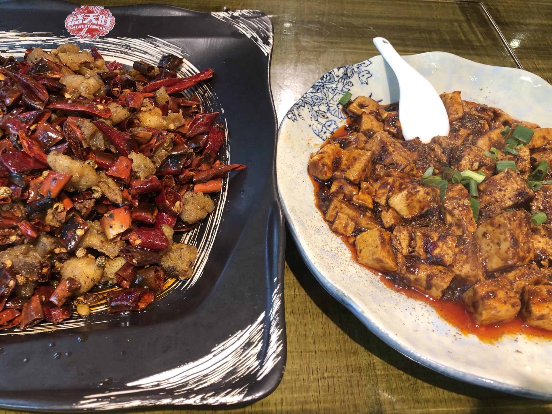 店在一幢类似写字楼的大楼里16层,店面不大,靠窗的座位都是玻璃,可以看外面的风景。毛血旺量大内容丰富,鸭血牛肚黄喉猪肝火腿苕粉应有尽有,味道不错;辣子鸡虽然辣椒占了一大半,但还是量很足的一盘,味道可以;麻婆豆腐很辣也很咸,调料都附着在一些豆腐上,不是很满意,共花费 ¥147