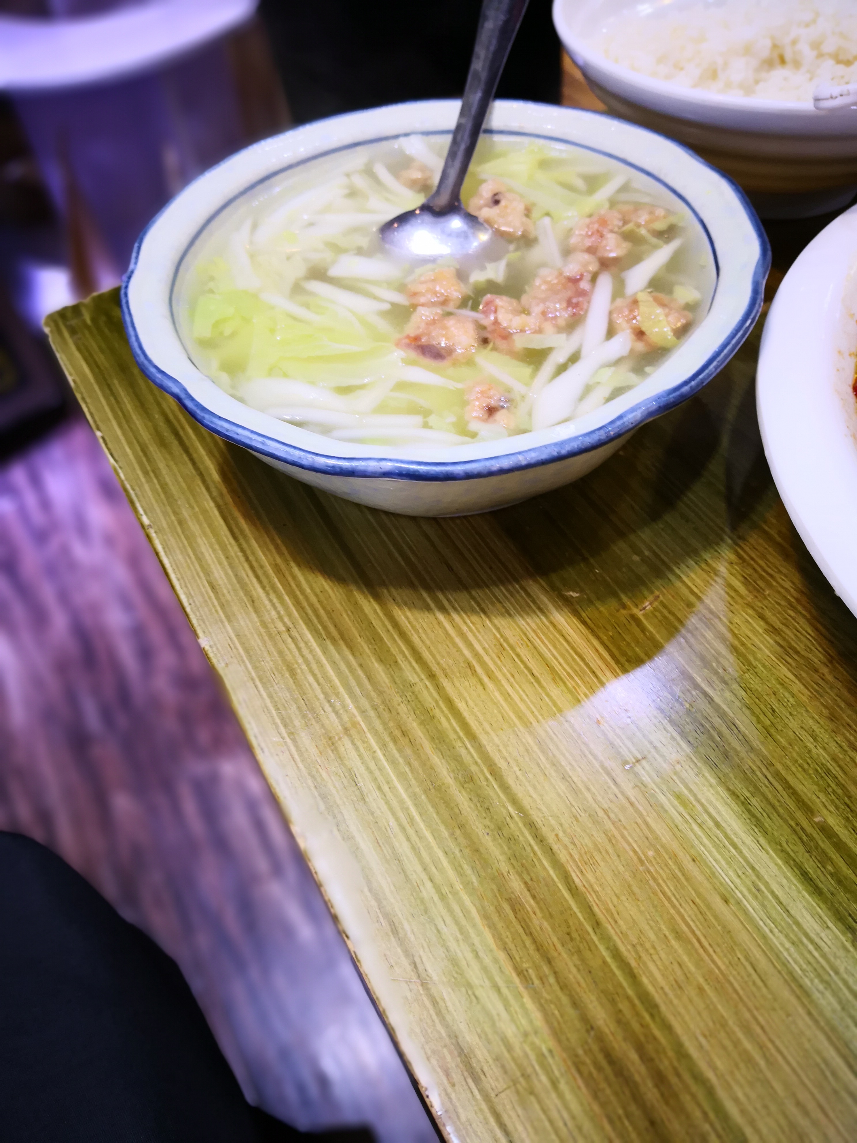 还有一个酥肉汤,就是把香酥鸡泡在白菜汤里,吃的辣了喝几口汤漱漱口,推荐指数:3星,无需排队,没必要特地去吃,最好人多点,2个人完全吃不完。