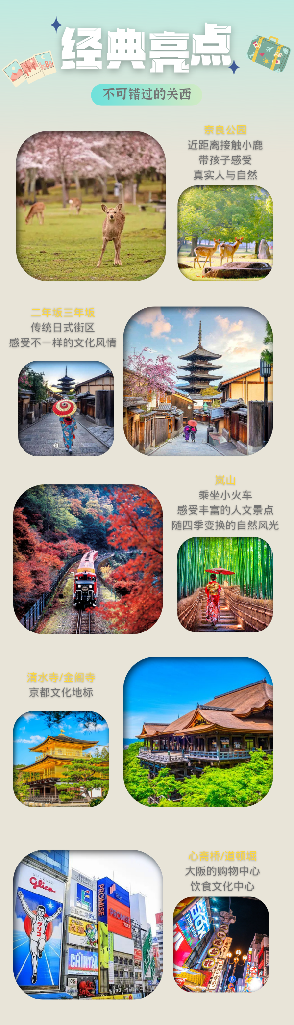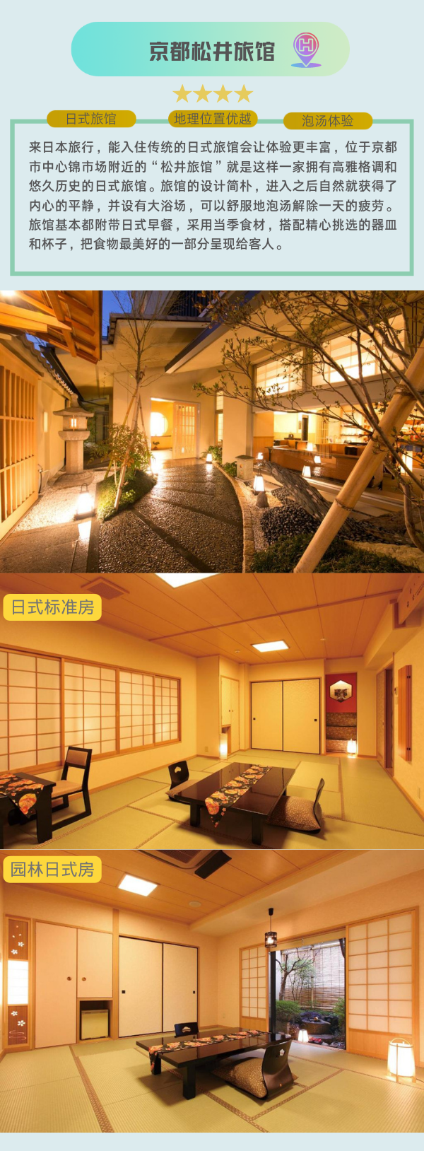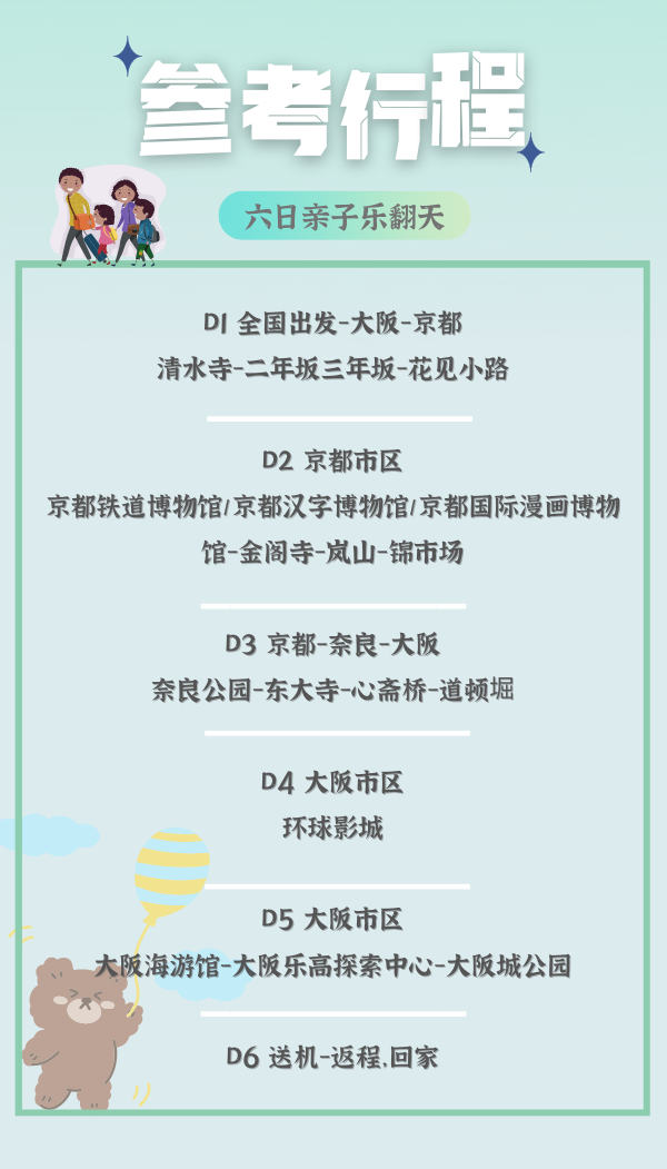 2.酒店:全程星级酒店;京都2晚日式酒店,大阪3晚星级住宿(可另定制酒店,详询客服)
