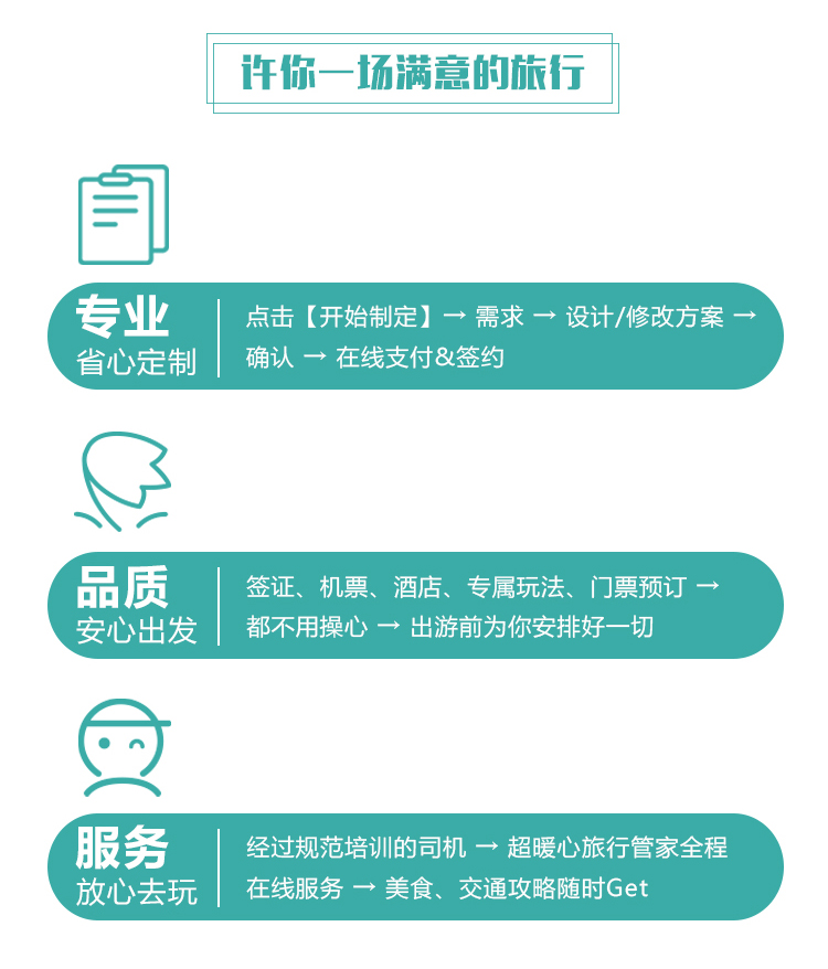7.服务:产品行程以参考为主,可根据自身需求个性化设计,无需额外服务费用;