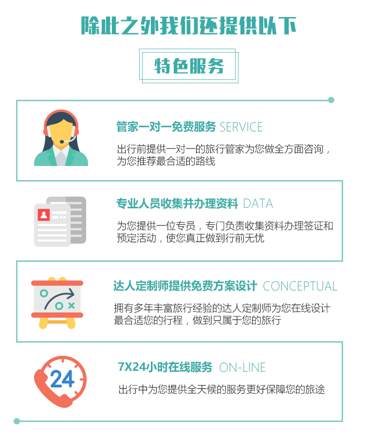 7.服务:产品行程以参考为主,可根据自身需求个性化设计,无需额外服务费用;