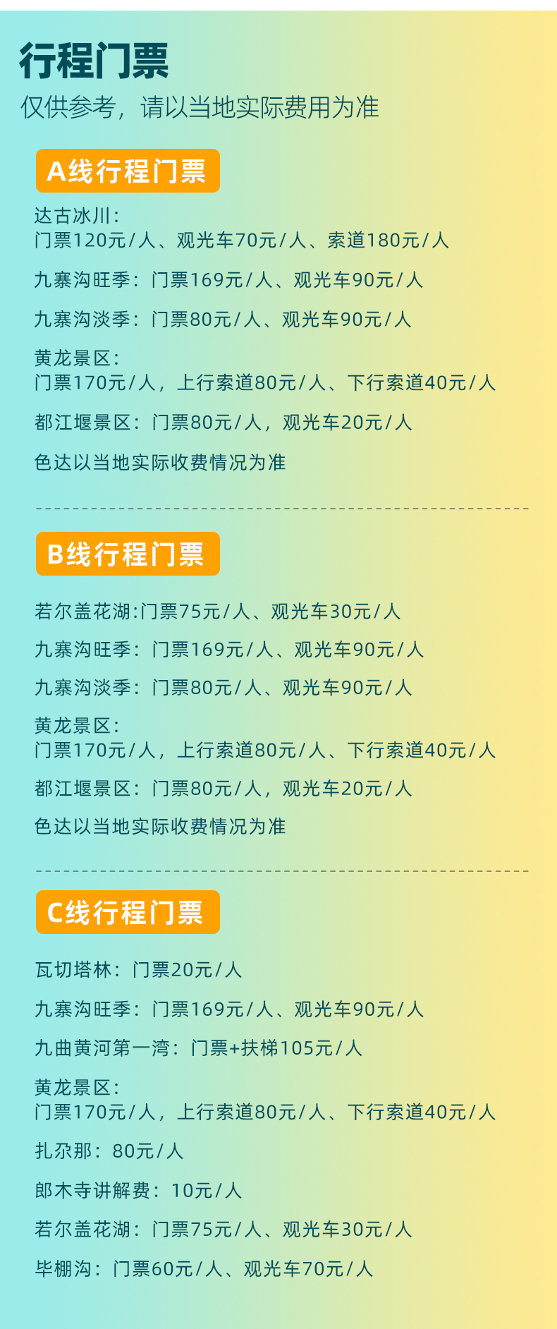 ③景区门票及景区内交通