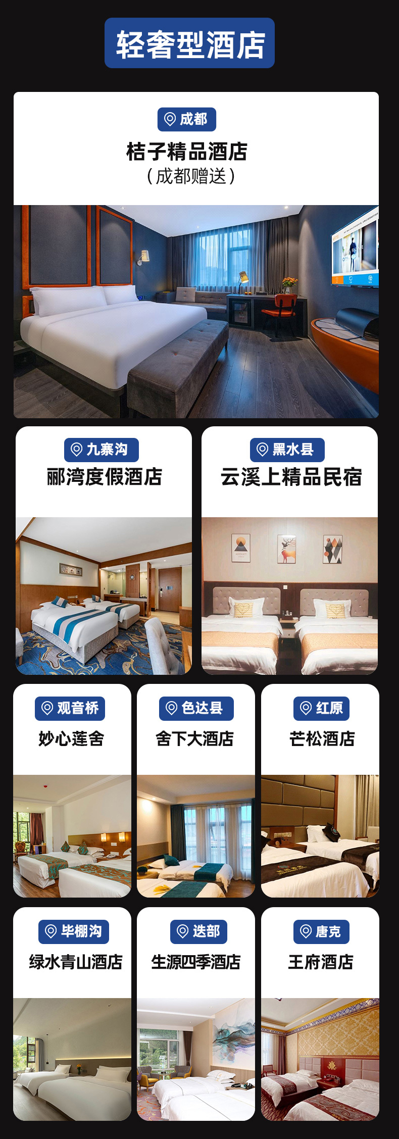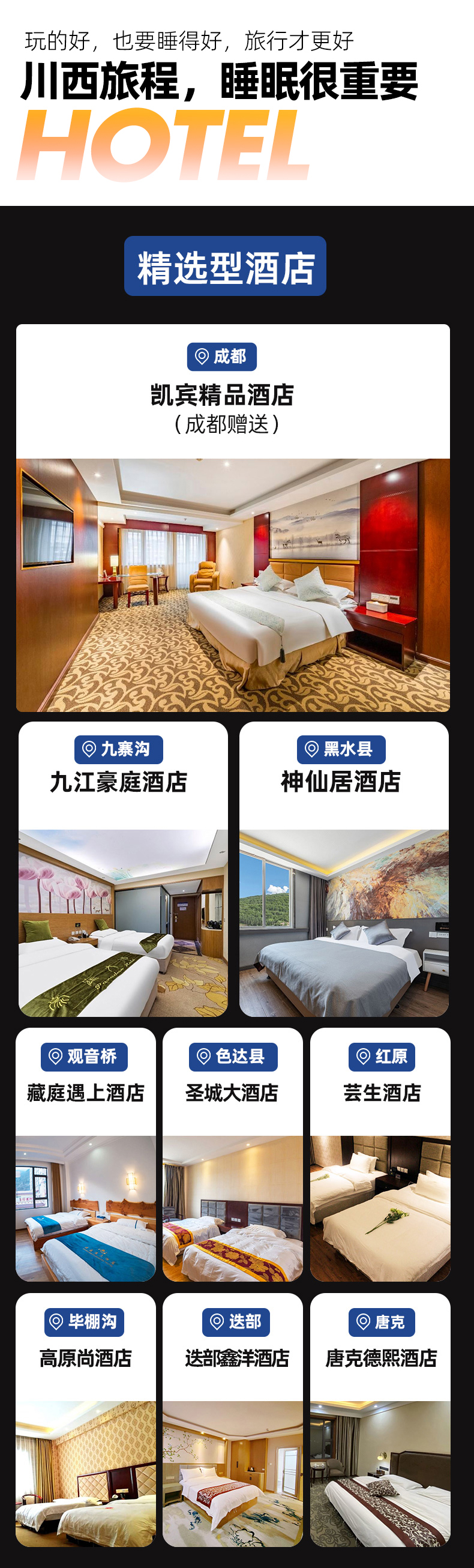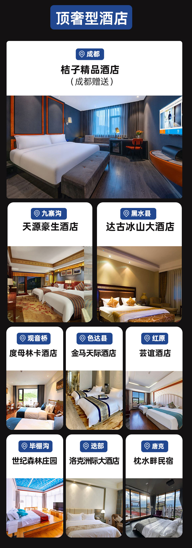 温馨提示:国庆/五一/成都市特殊活动(如糖酒会、大运会)前后及期间均不赠送成都住宿。