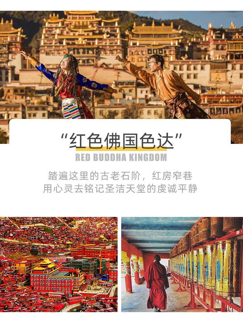 5、关于宗教:甘孜州地区为藏传佛教圣地,景区景点以及寺庙内均有法物流通处,请尊重当地民风民俗,根据自身信仰自愿消费。