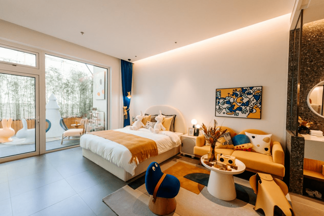 “Wonderland Resort”万得澜度假酒店,寓意“童话中的仙境”,营造亲子度假主题风格,旨在为客人创造舒适的旅宿空间体验,精心打造充满童趣和自然奇幻的休闲度假旅居目的地,让客人度过一个温馨的亲子假期。