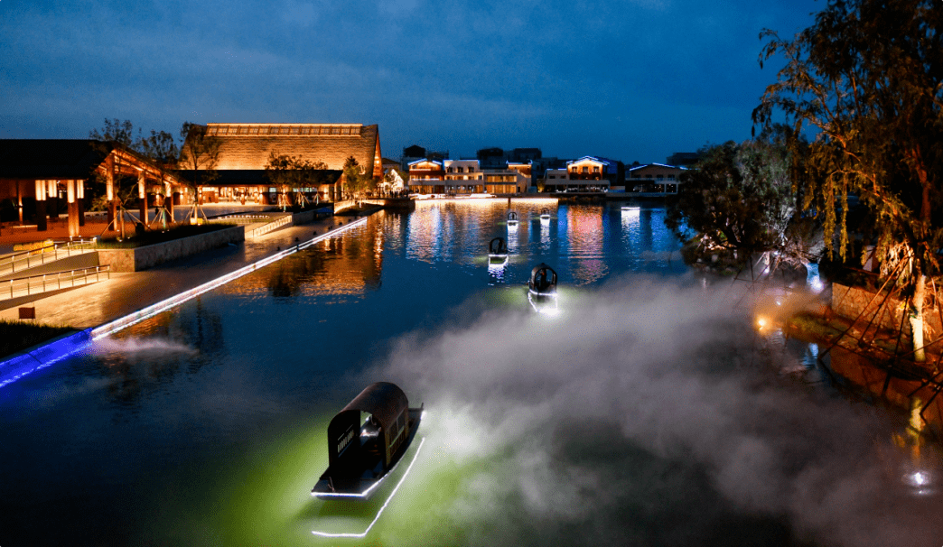 渔田·七里海度假区,区域内首创大型“沉浸式轻潮文旅演绎”——《渔人的世界》实景主题夜游演艺,数百人表演团队,全景IMAX交互体验,运用高科技装备打造沉浸式演艺,感受一幕幕精彩绝伦的视听盛宴。